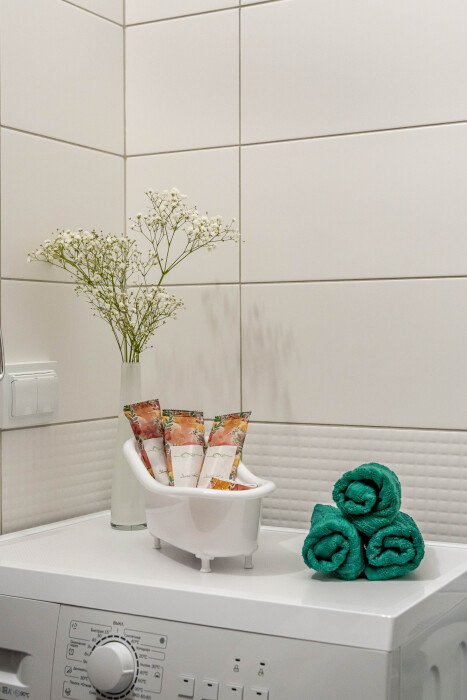 - в квартире есть все для комфортного проживания 4 гостей: полностью оборудованный кухонный уголок со всей посудой, электроплита, чайник, микроволновка, утюг, гладильная доска, стиральная машина, сушилка, фен, полноценная ванная комната с ванной и туалетом, жк-телевизор, холодильник, фильтр для очистки воды, бесплатный wi-fi;