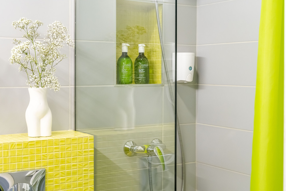 - утюг, гладильная доска, сушилка, ванная комната с душевой кабиной, стиральная машина;
