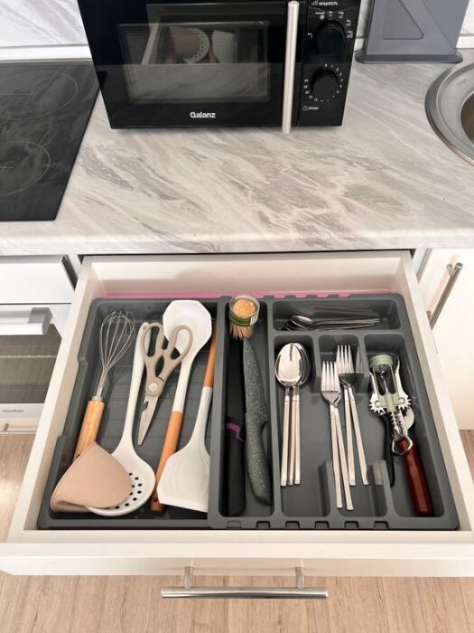 - Полностью оборудованная кухня (холодильник, чайник, микроволновка, варочная плита, духовой шкаф, посуда, столовые приборы).