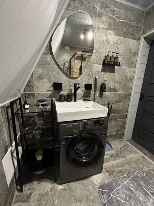 - 3 спальни с двуспальными кроватями, спальное место 160 на 200. совмещённая кухня-студия(зал) с раскладным удобным диваном и обеденной зоной, санузел с душевой.