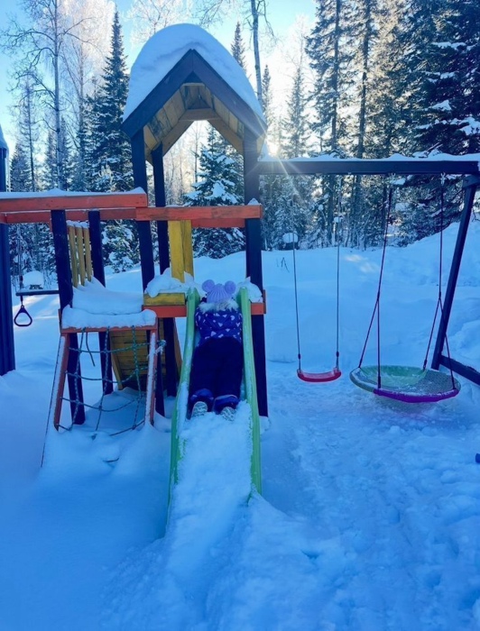 - детский городок с горкой и двумя качелями;