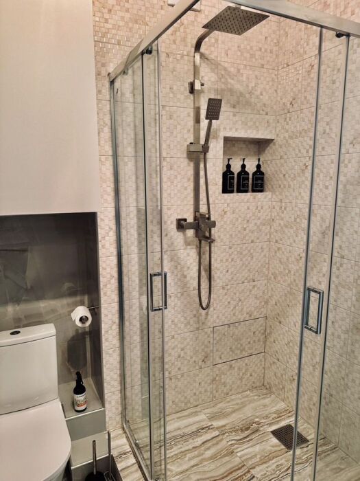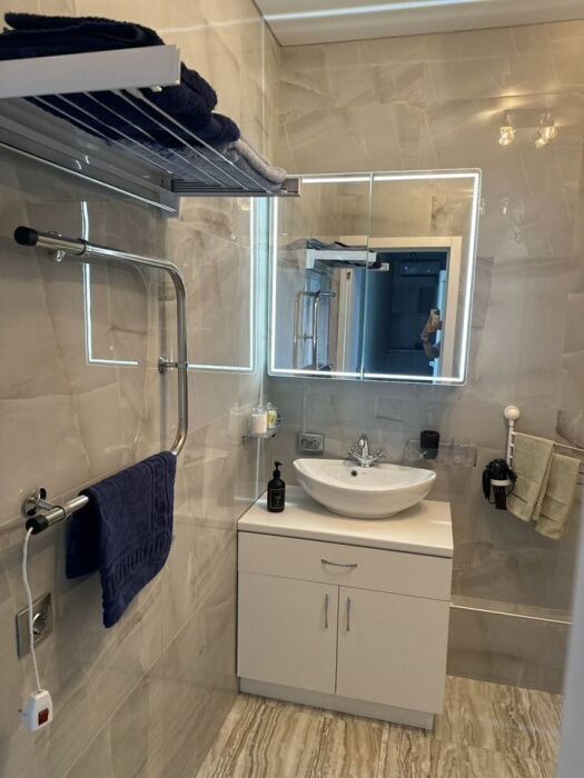 В квартире имеется всё необходимое: чистое постельное бельё, полотенца для каждого гостя, посуда, столовые приборы, фильтр обратного осмоса воды, средства гигиены, включая одноразовые зубные щётки с зубной пастой, ватные диски, зубные нити, аптечка, тапочки.