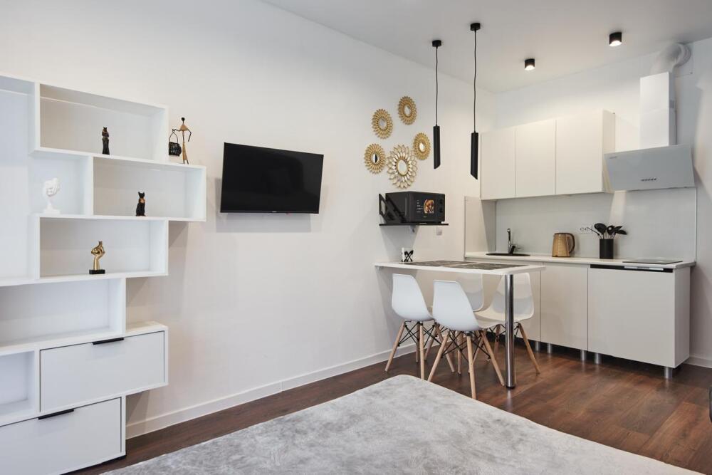Предлагаем Вам остановиться в уютной студии, где предусмотрено все для Вашего беззаботного отдыха. К Вашим услугам свежее постельное белье, мягкие полотенца и все необходимые туалетные принадлежности.
