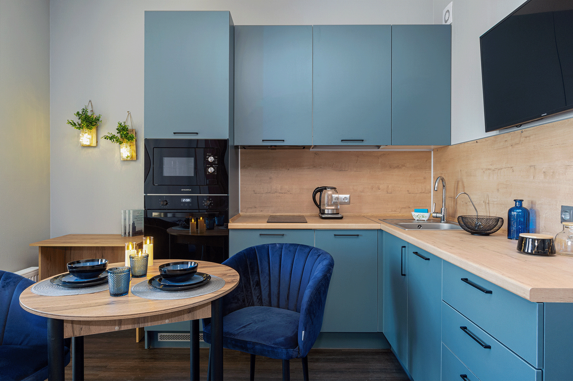 - Духовой шкаф и микроволновая печь.