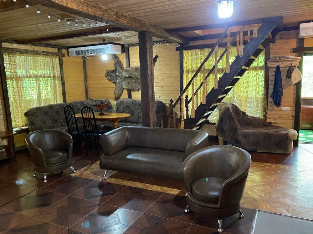 На территории есть Wi-Fi, крытый бассейн, русская баня, банный чан. Баня входит в стоимость проживания.