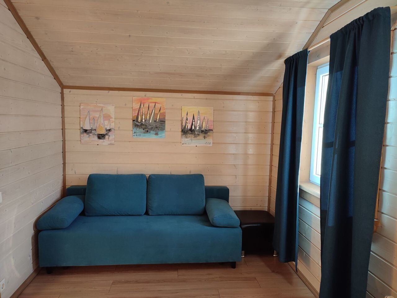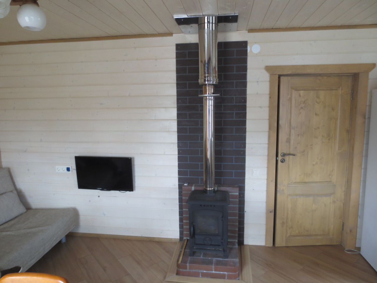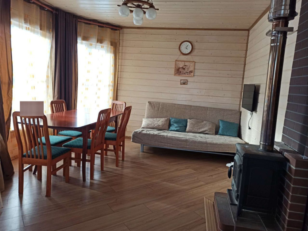 - гостиная-студия с панорамными окнами, кухней ,дровяным камином и раздвижным двухместным диваном;
