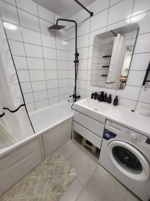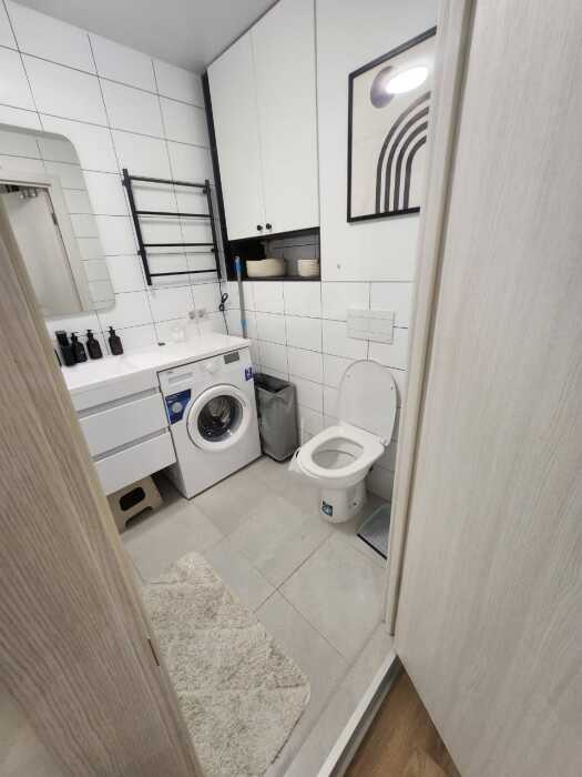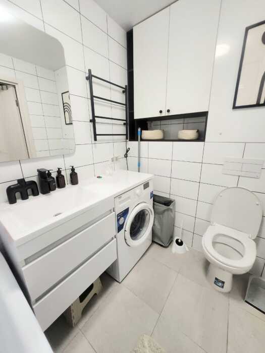 Ванная комната: современная ванная комната оснащена стиральной машиной. Гостям предоставляются туалетно-косметические принадлежности.