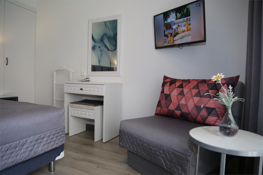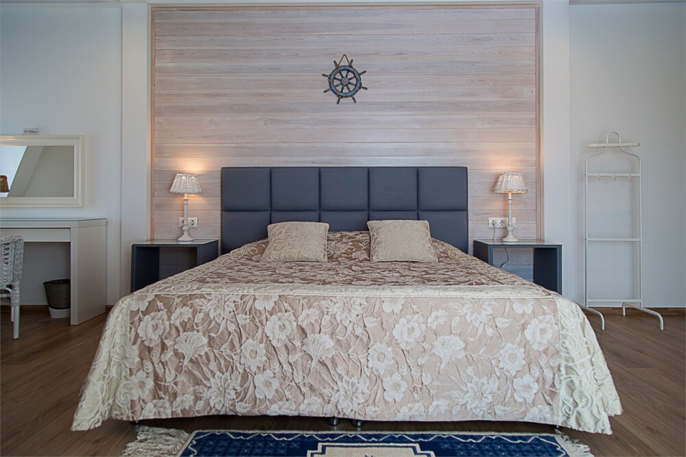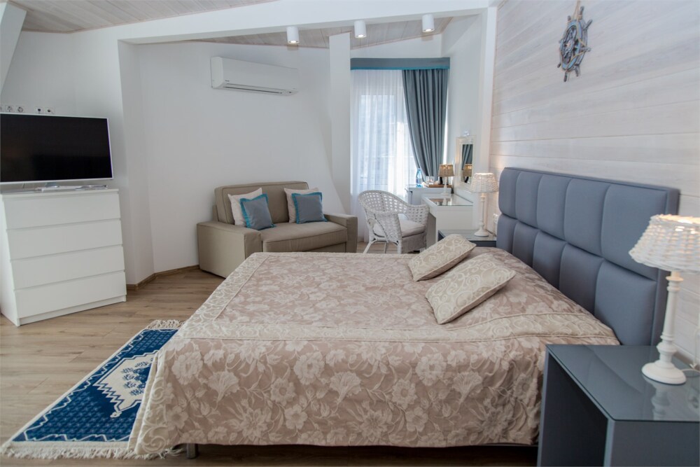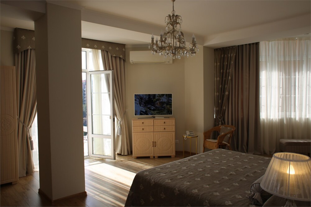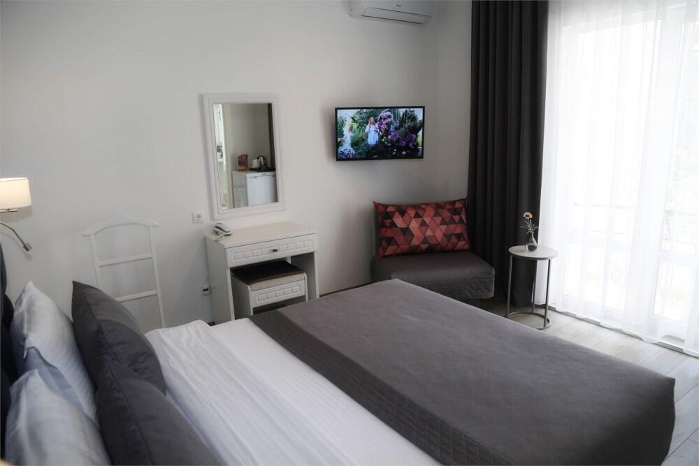 Большой, очень светлый номер, с видом на море и горы, оборудован всем необходимым для отдыха. В номере: двуспальная кровать или 2 односпальные, Диван 2-местный, Балкон, Wi-Fi.
