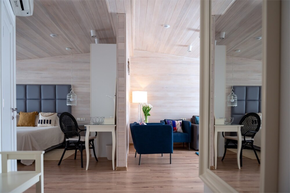 Однокомнатный стильный номер площадью до 33 кв. м., с собственным выходом к бассейну, отвечает всем требованиям к полноценному отдыху и комфорту. Идеально подойдет для семьи с детьми, с возможностью взять с собой любимого питомца.