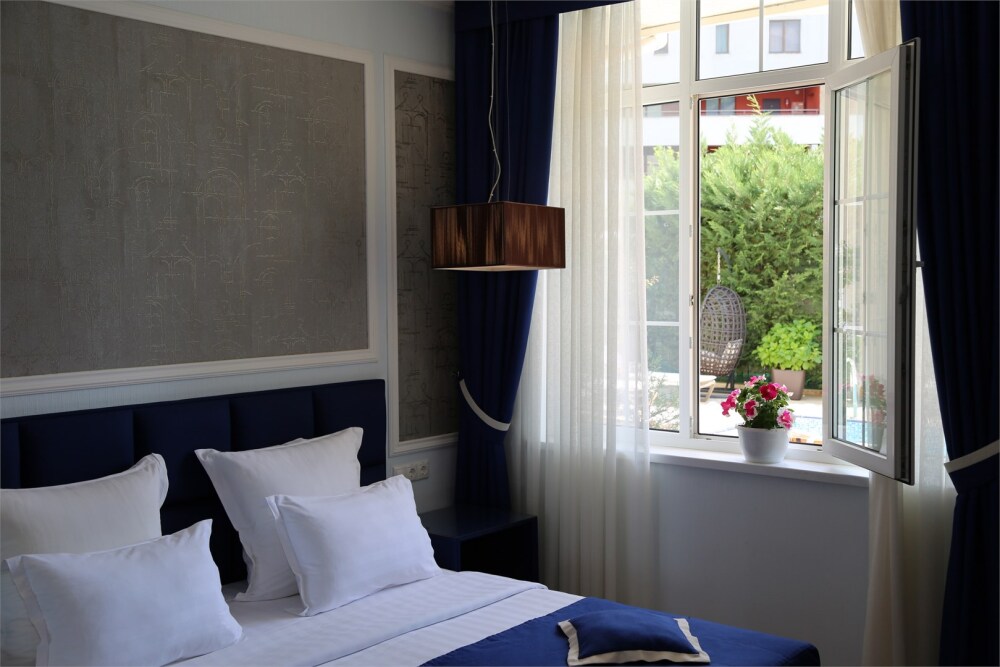 Из окон нашего отеля открывается очаровательный вид на район старого Гурзуфа, природоохранный заповедник «Гора Балгатура», море и Главную гряду Крымских гор (Гурзуфская яйла). Отель располагается в тихом районе Гурзуфа, в стороне от суеты и шума. В то же время расположение отеля позволяет в любое время окунуться в праздничную атмосферу вечернего Гурзуфа дойдя 10 минут до исторической части и набережной Гурзуфа.