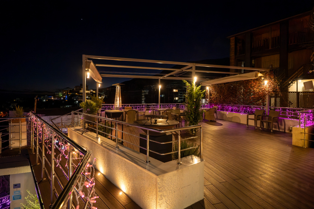 К услугам наших гостей открытый подогреваемый бассейн, ресторан в марокканском стиле с открытой террасой, банный комплекс, парковка, детский клуб, трансфер до/с пляжа на электрокаре.