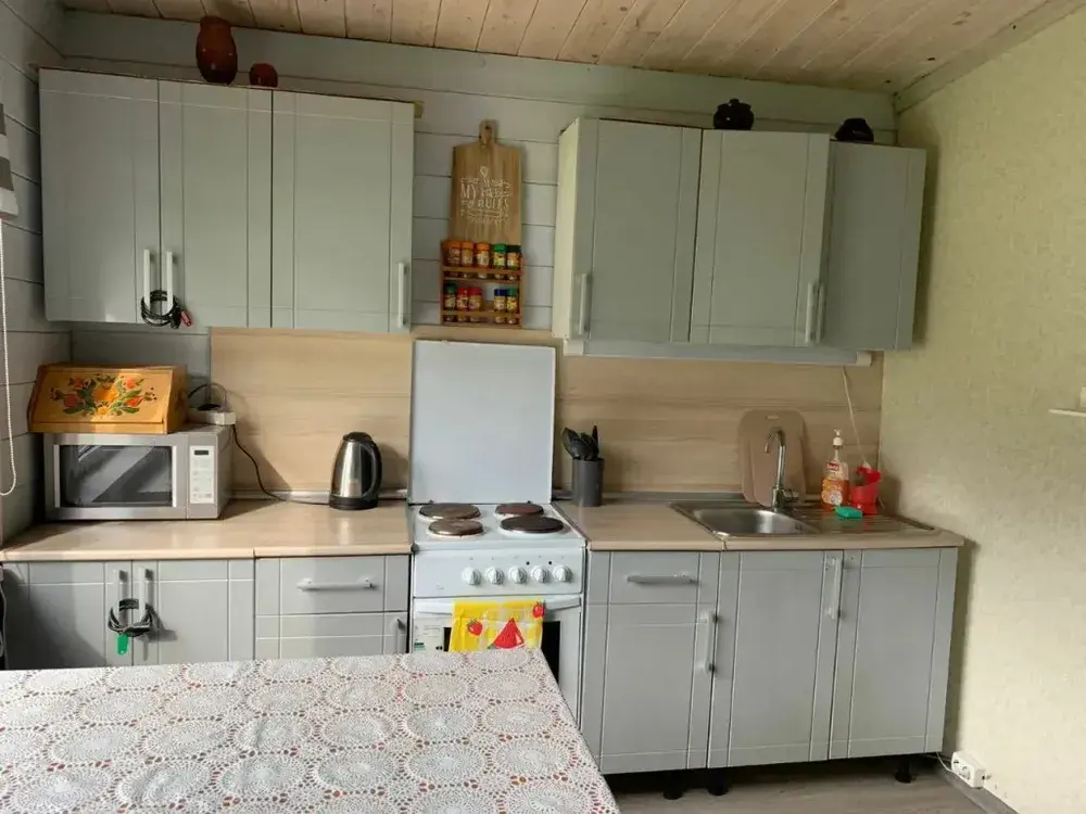 Дом представляет собой 2 комнаты (спальная и гостиная ), просторная кухня, ванная комната и закрытая веранда.