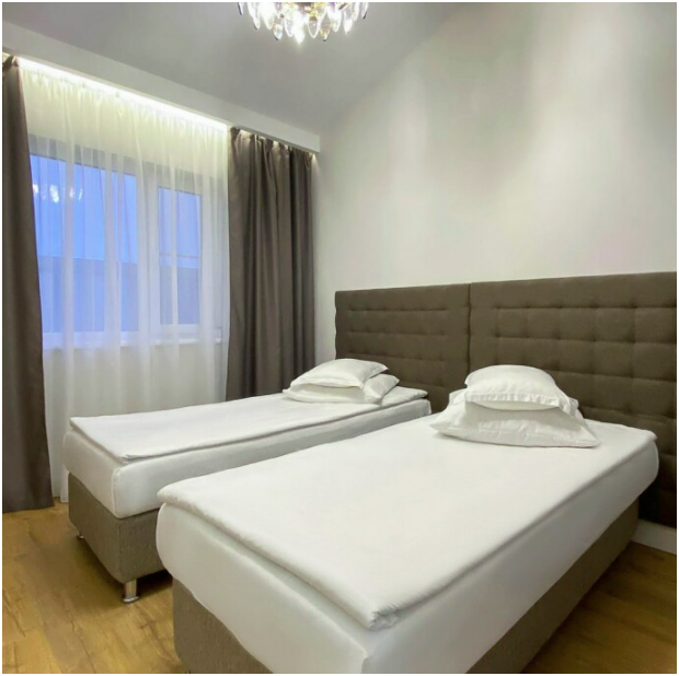 • 1 двуспальная кровать, 2 односпальных кровати, 1 диван-кровать, детская кроватка (по запросу)