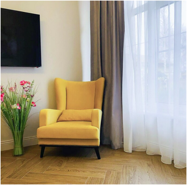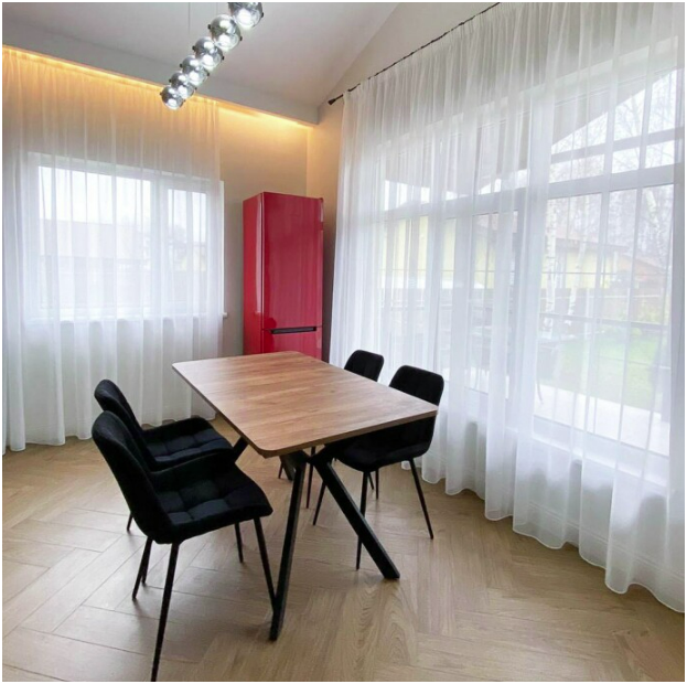 Коттедж с двумя изолированными спальнями (одна — с двуспальной, вторая — с двумя односпальными кроватями), постирочной комнатой с гардеробом, кухней со столовой зоной и гостиной. Комфортная вместимость — 4 человека (возможна организация двух дополнительных мест за отдельную плату).