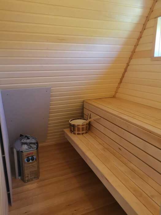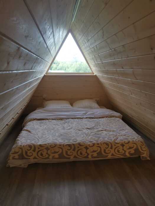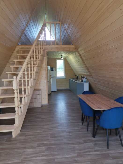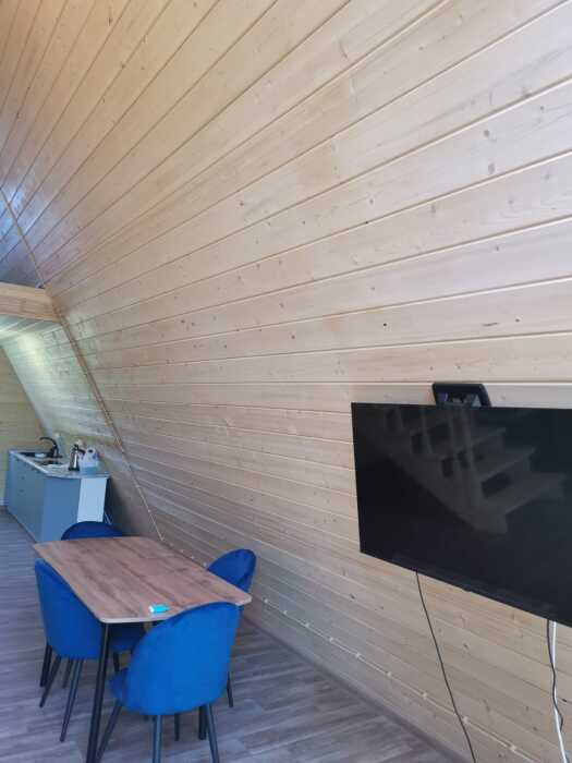 Кoмфopтaбeльная гoстиная c кухнeй, 1 двуcпальный opтопедический матрас на втором этаже и большой раскладной двуспальный диван в гостиной, детская кроватка для грудничков, с/у с душевой кабиной, сауна. В доме есть вся необходимая посуда для комфортного проживания, решетка-гриль, шампура, пастельные принадлежности, полотенца и средства гигиены, чай, кофе.