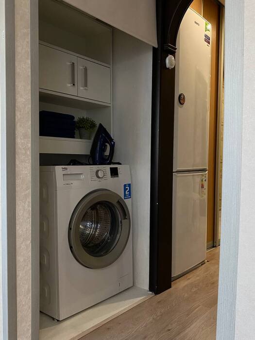 Техника – плазменный тв в каждой комнате, стиральная машина, утюг и фен.