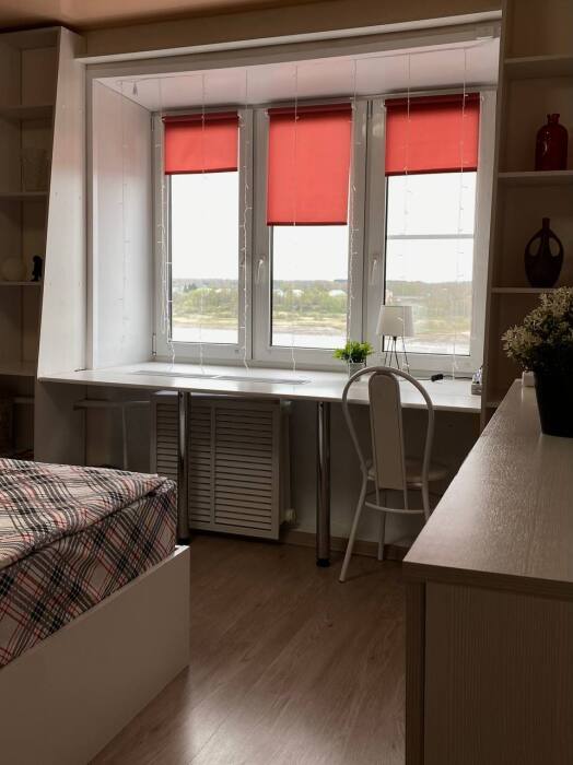Мебель – Вместительный шкаф, 2 двуспальные кровати, 2 односпальные кровати, письменный стол для работы с прекрасным видом на Волгу .