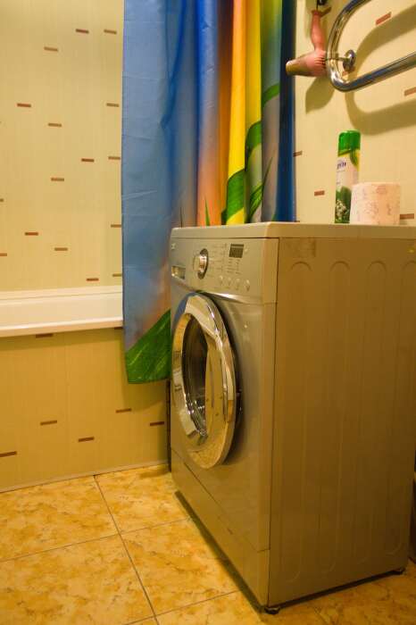 Техника – плазменный ТВ, стиральная машина, утюг и фен.