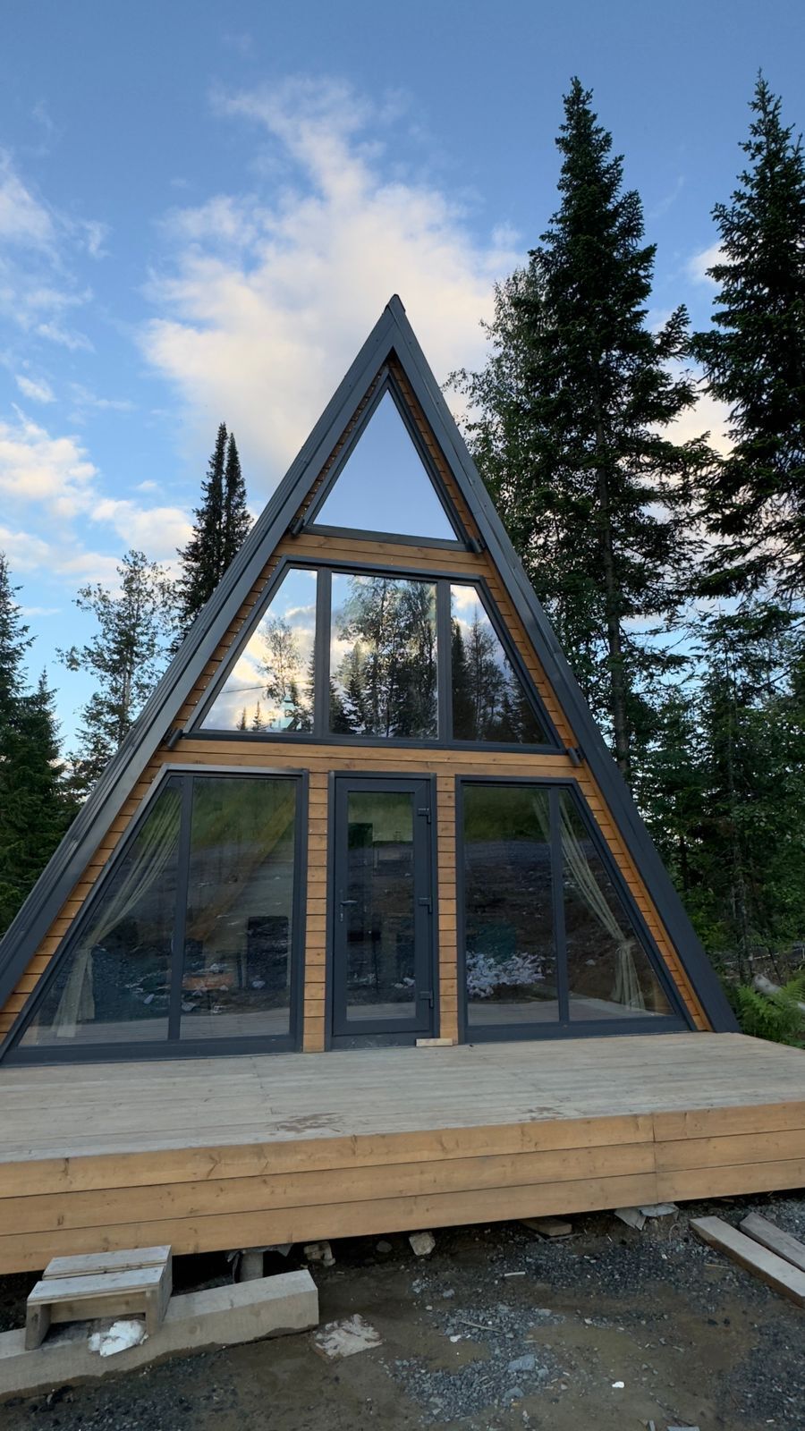 Гостевой дом «Катушка» - новый, комфортный дом в стиле A-frame, с панорамным остеклением, в котором совмещены современный интерьер и колорит загородного дома с непревзойденным ароматом натурального дерева.