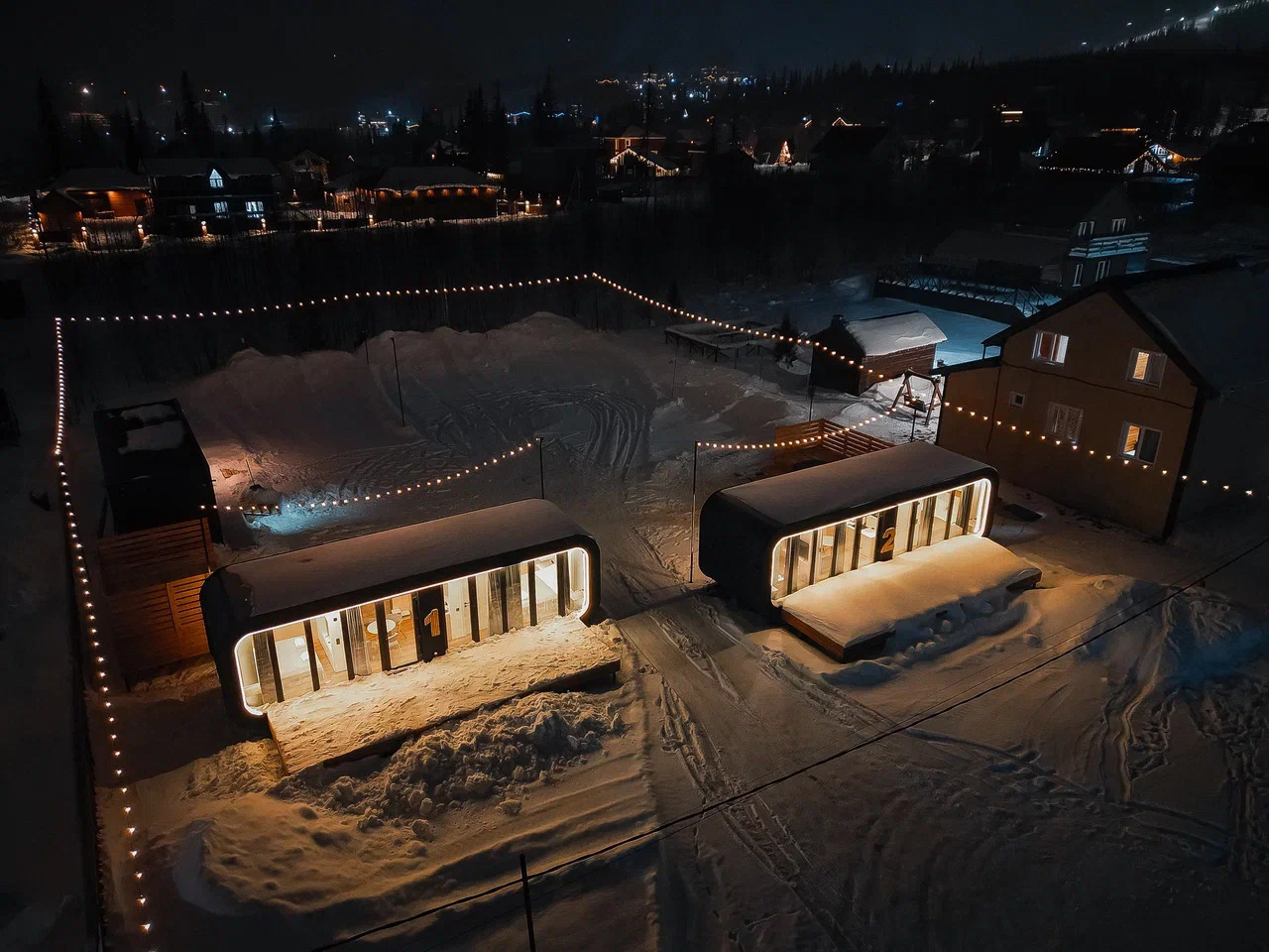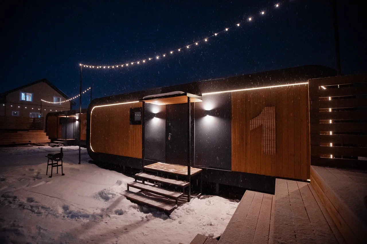 Наши дома будут интересны любителям современного минимализма в дизайне интерьера. Много рассеянного, спокойного света. Панорамные окна соединяют внутреннее пространство с окружающим миром. После активного отдыха расслабиться Вам помогут лаунж-зоны наших домов - просторные и комфортные 2-спальные кровати. Беспрерывно насыщать кислородом комнаты позволяет установленная приточная система очистки воздуха. Также в Вашем пользовании умный дом, который управляется через Яндекс станцию Алиса, а это свет, теплый пол, вытяжка. Также в доме есть телевизор со смарт ТВ в каждой комнате и WiFi.