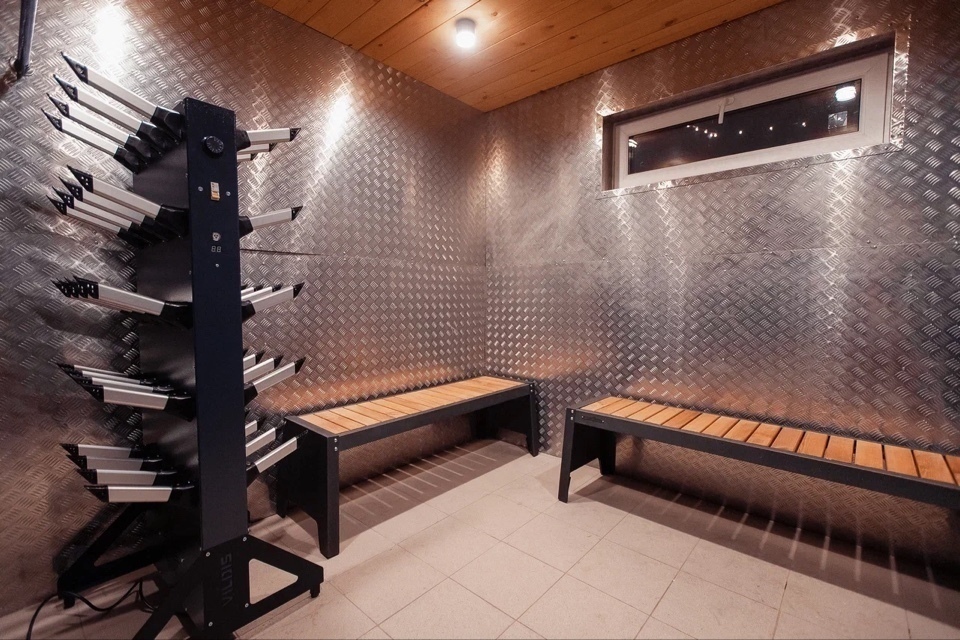 Возле дома есть отдельный сушильный модуль, где Вы можете оставлять свою одежду, обувь и аксессуары после катания. Температура и хорошая вентиляция сделают Ваши вещи сухими. Попробуйте новый формат проживания с эстетическим удовольствием!