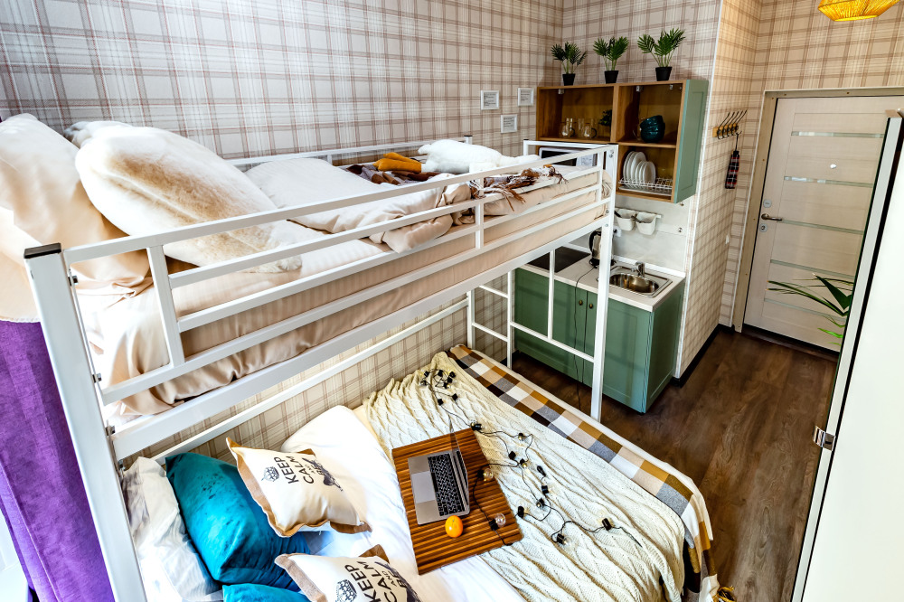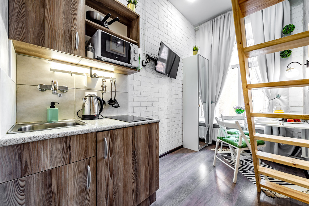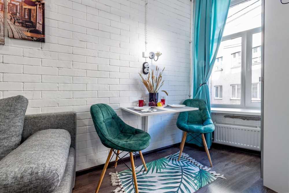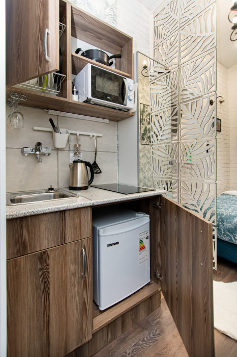 Апартаменты оборудованы всем необходимым для комфортного проживания: просторное помещение, современные и полностью оборудованные ванная комната и кухня. Студия отличается стильным дизайном и удобной мебелью.