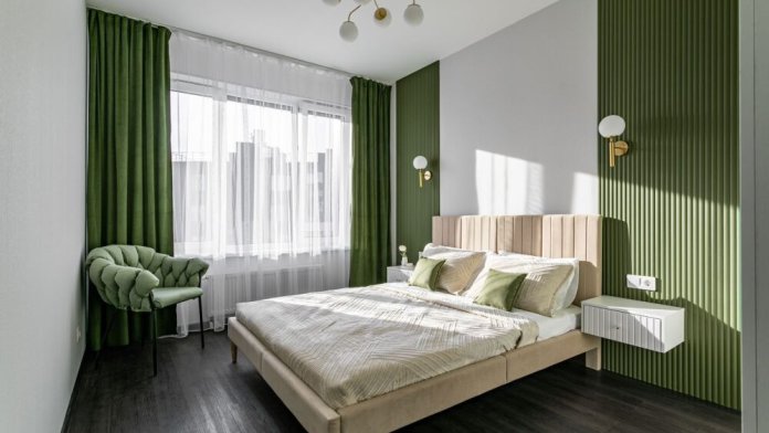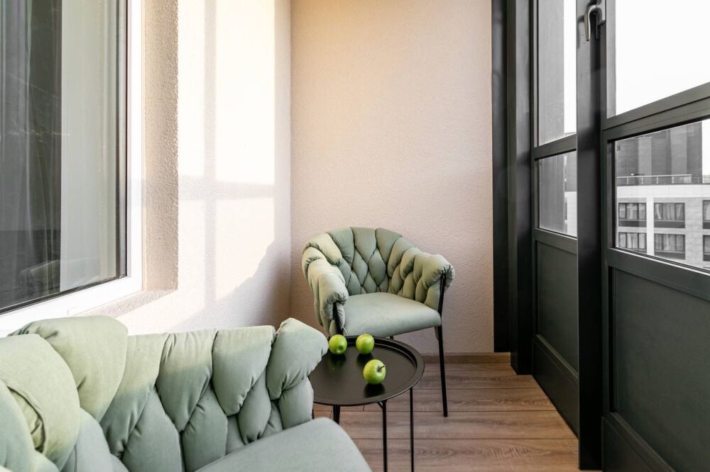 В квартире 2 комнаты и кухня-гостиная («евротрешка»), есть все необходимое как для длительного, так и для краткосрочного пребывания. Все окна и лоджия выходят во внутренний двор без машин. В квартире три спальных места с размещением до 5 человек: Спальня 1: двуспальная кровать 160, вместительный шкаф, кресло; Спальня 2: двуспальная кровать 160; тв с тумбой, рабочий стол, большая лоджия с зоной отдыха; Кухня-гостиная: раскладной диван 120, стол, три стула, тв с тумбой, кухонный гарнитур (плита, духовка, большой холодильник, свч). Санузел раздельный: большая ванная комната с ванной, раковиной, тумбой стиральной машинкой. Туалет с унитазом и раковиной. В прихожей вместительный шкаф для хранения.