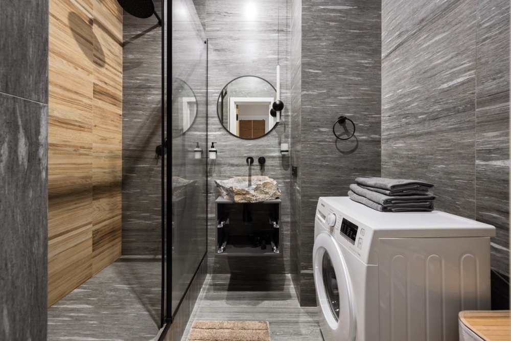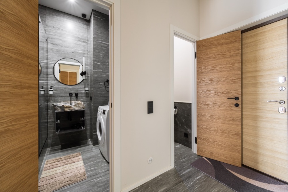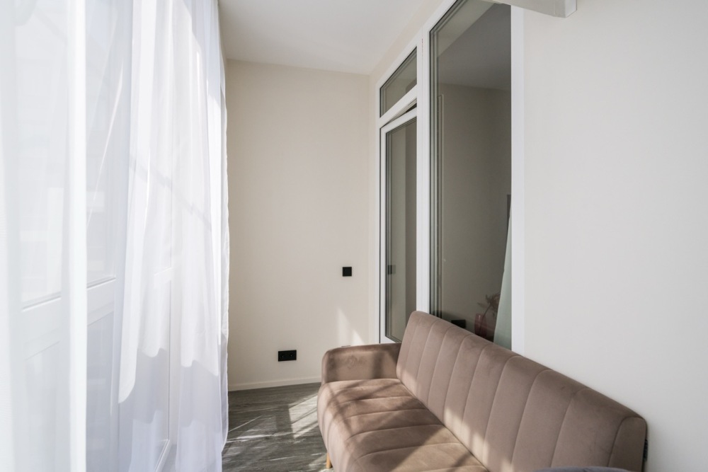Санузел раздельный: большая ванная комната с душевой, раковиной, тумбой, зеркалом и стиральной машинкой. Туалет с унитазом и раковиной. Также есть фен и утюг. В квартире есть лоджия. Свежее постельное белье и полотенца предоставляются.