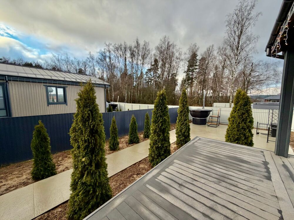 - просторная терраса на первом этаже с выходом из кухни-гостиной — идеальное место для утреннего кофе или вечерних посиделок с друзьями.