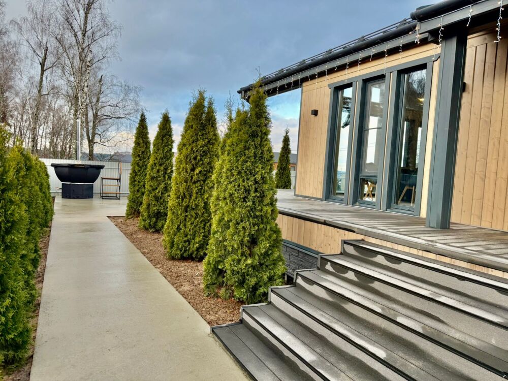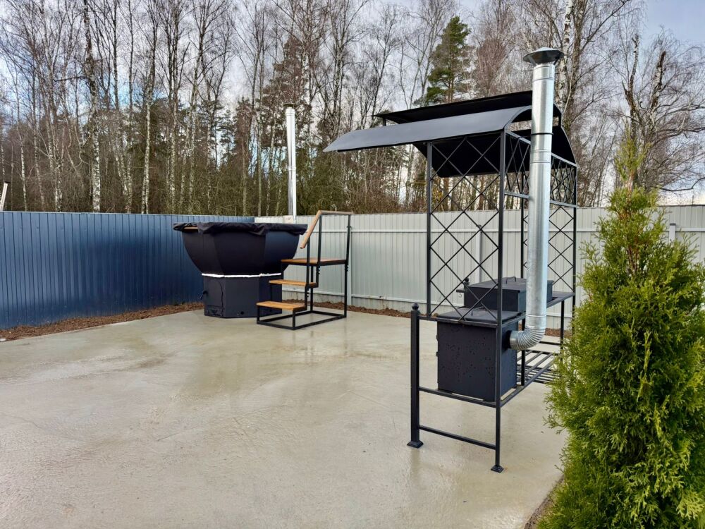 - Каждый дом оснащен собственным банным чаном и мангалом, чтобы вы могли наслаждаться отдыхом на свежем воздухе. Чан арендуется отдельно за 4000 руб. за 2 часа с добавками из еловых веток, трав и цитрусов — идеальный способ расслабиться!