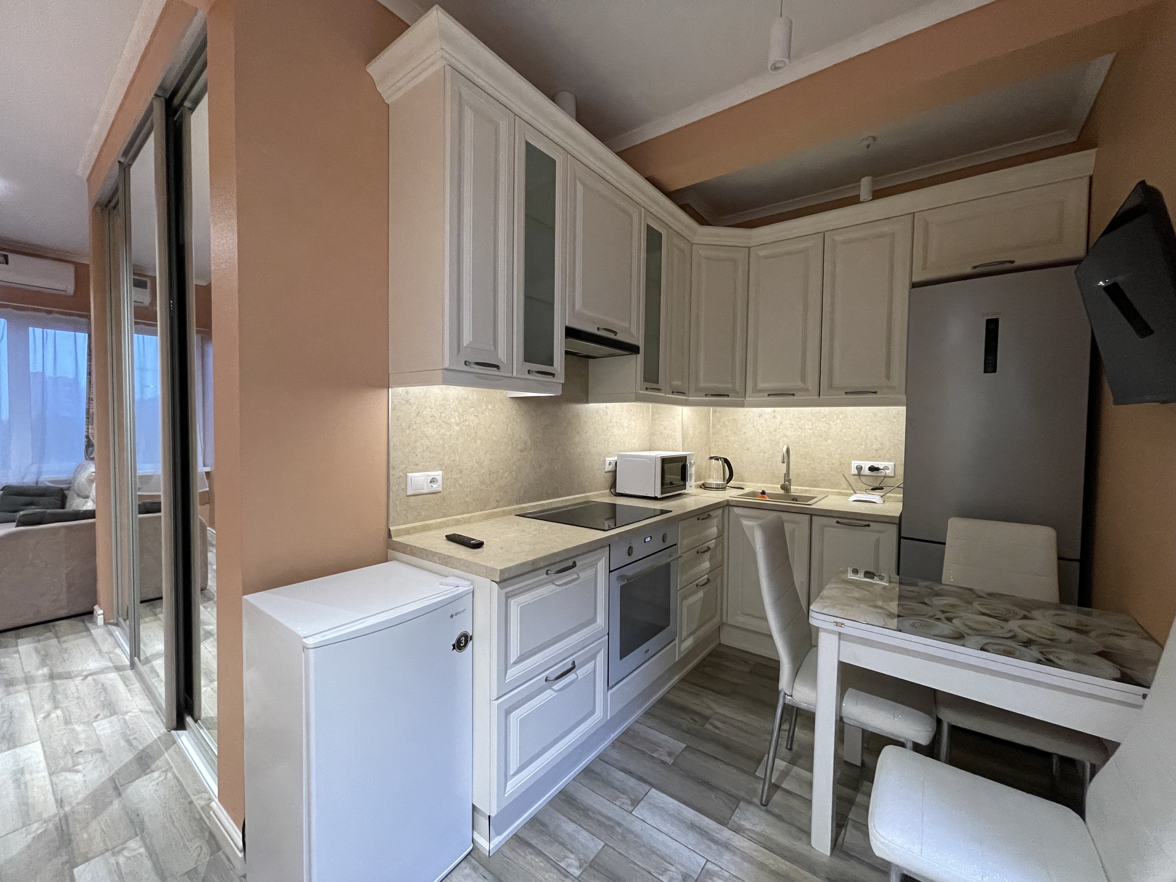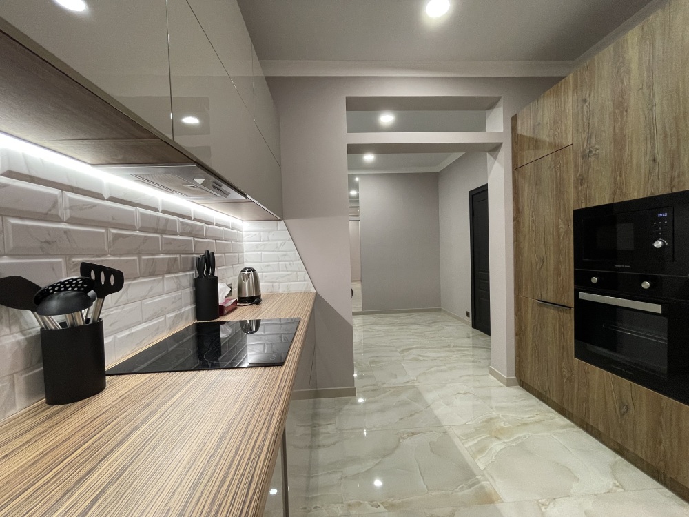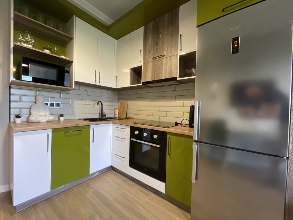 В квартире есть всё необходимое для проживания: холодильник, микроволновка, кухонная плита, свч печь, кондиционер, стиральная машина, Wi-Fi и телевидение.