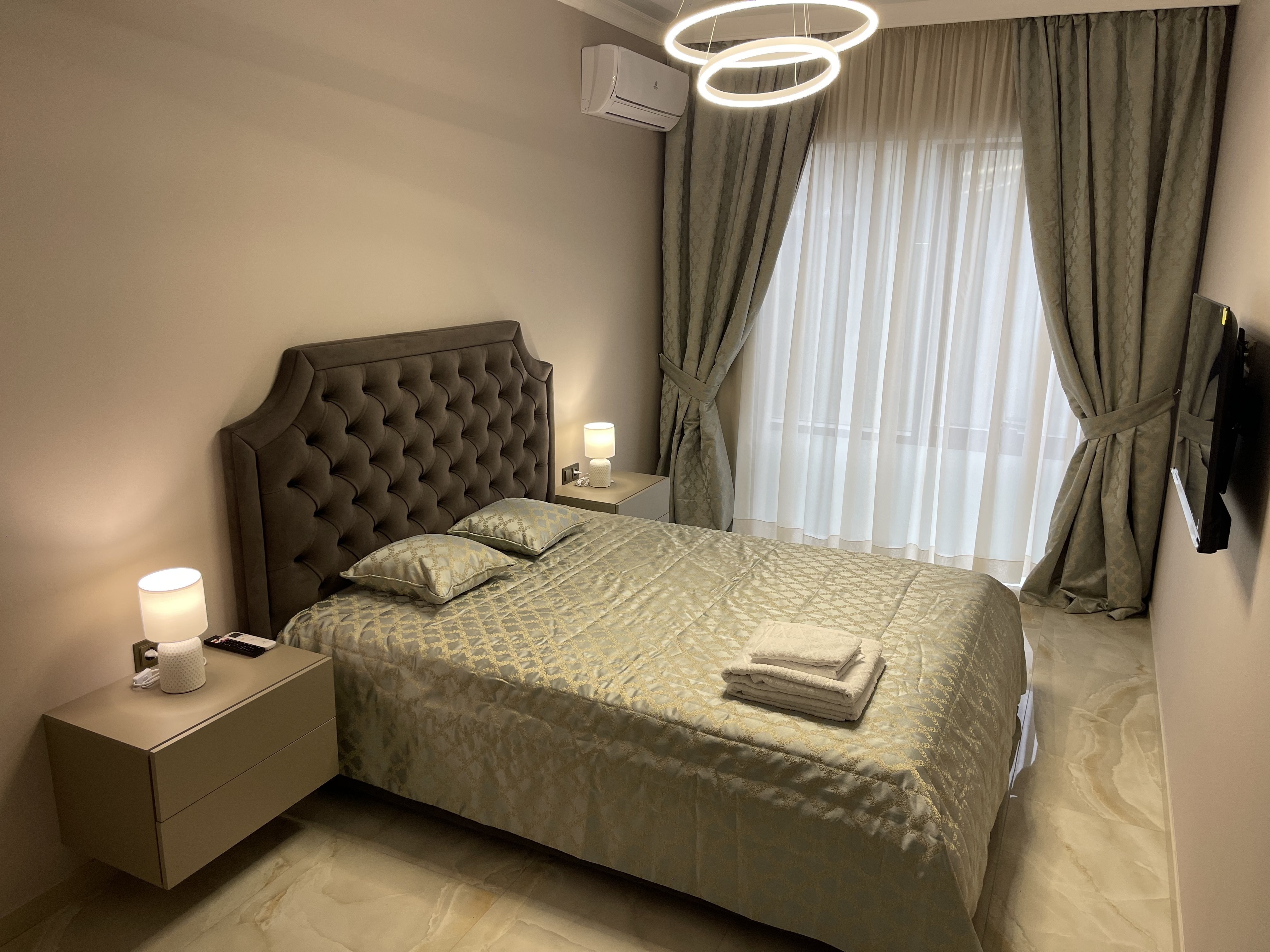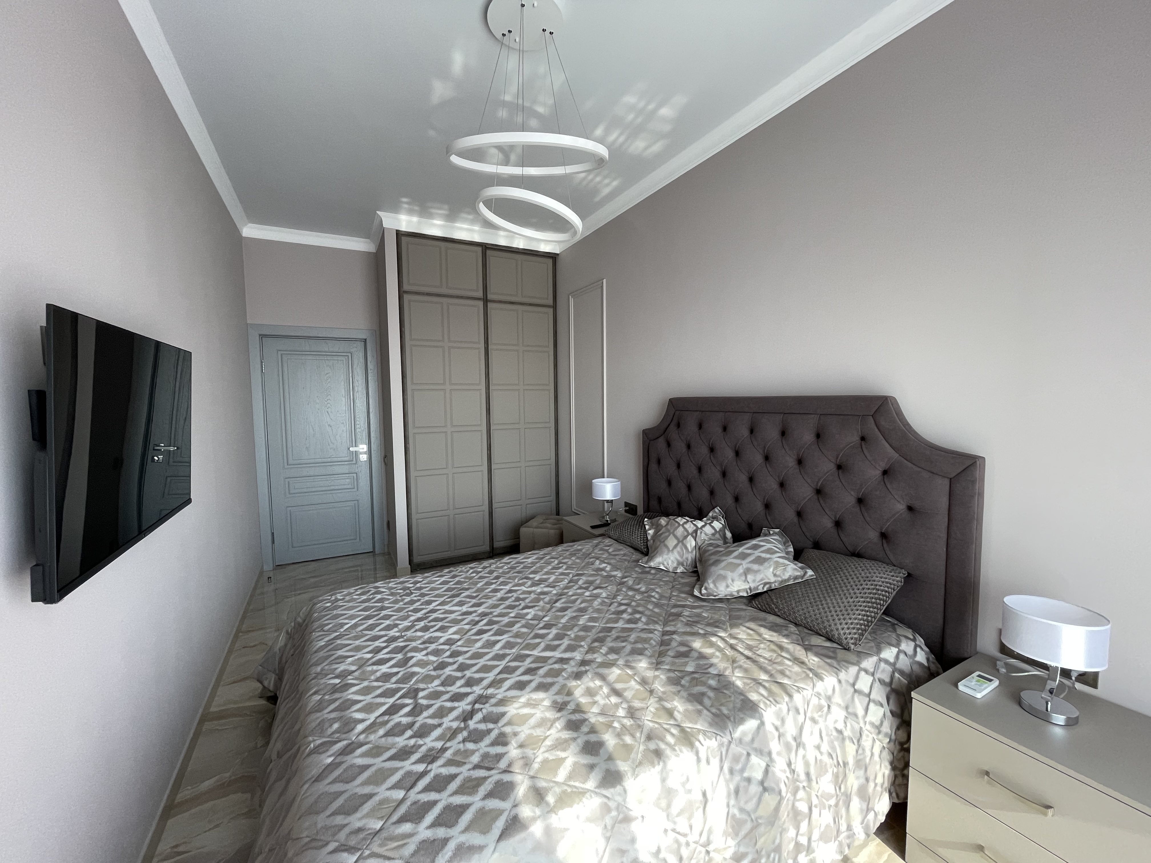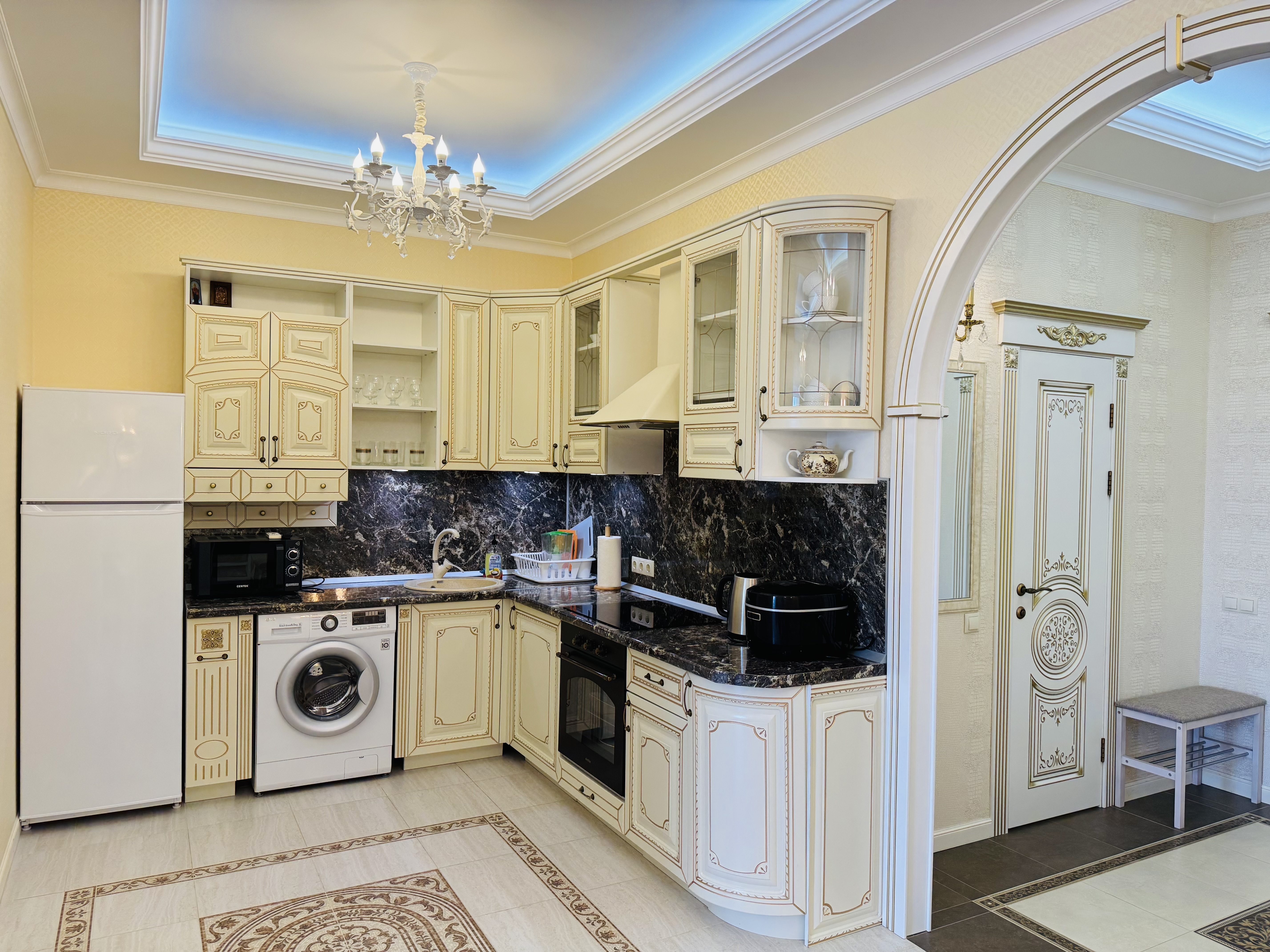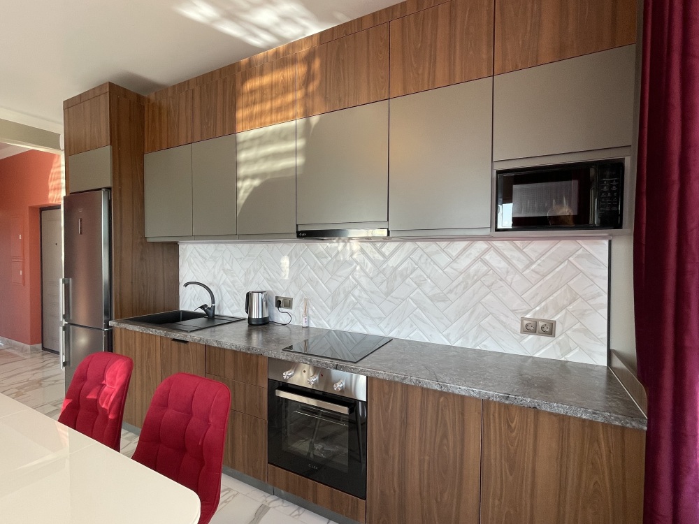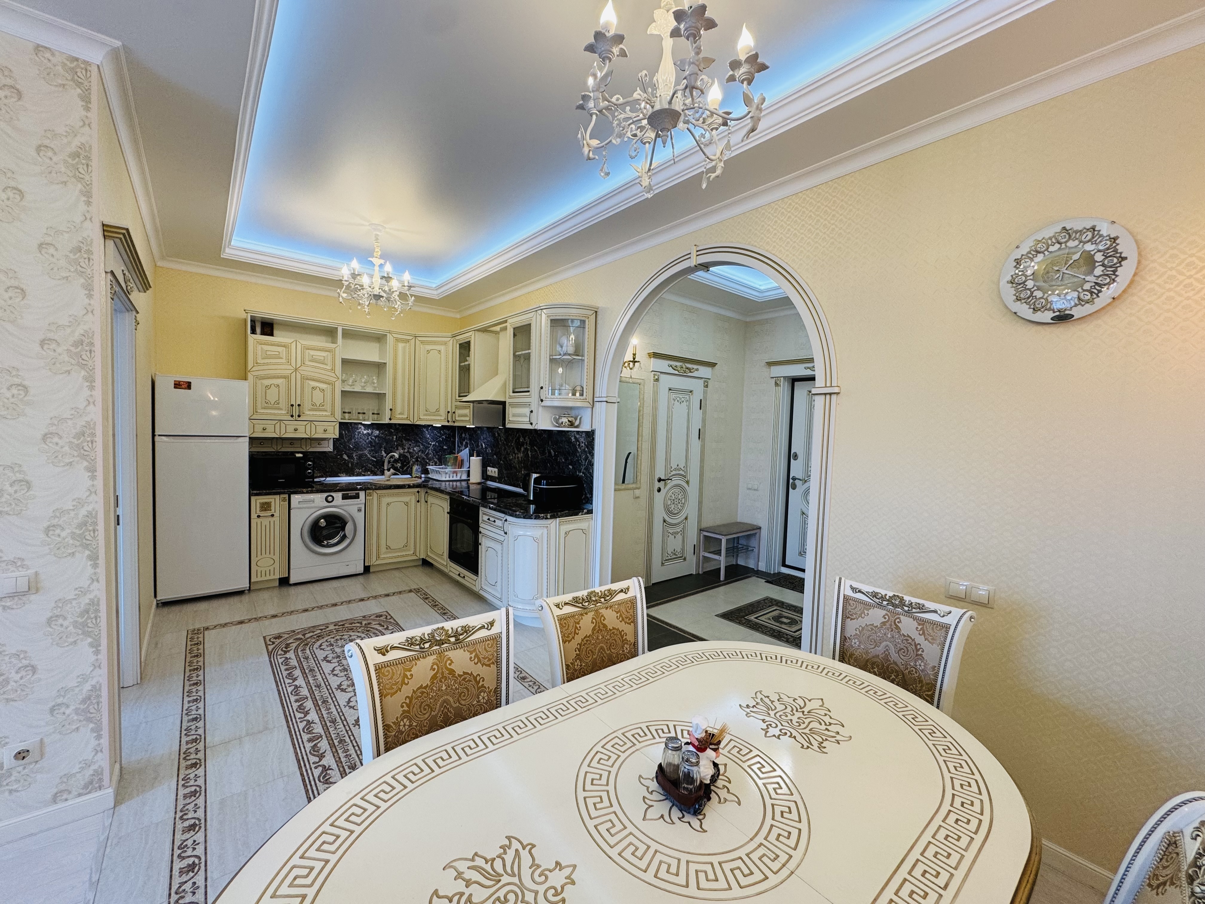 В квартире есть всё необходимое для проживания: холодильник, микроволновка, духовка, посудомоечная машина, кондиционер, стиральная машина, Wi-Fi и телевидение.