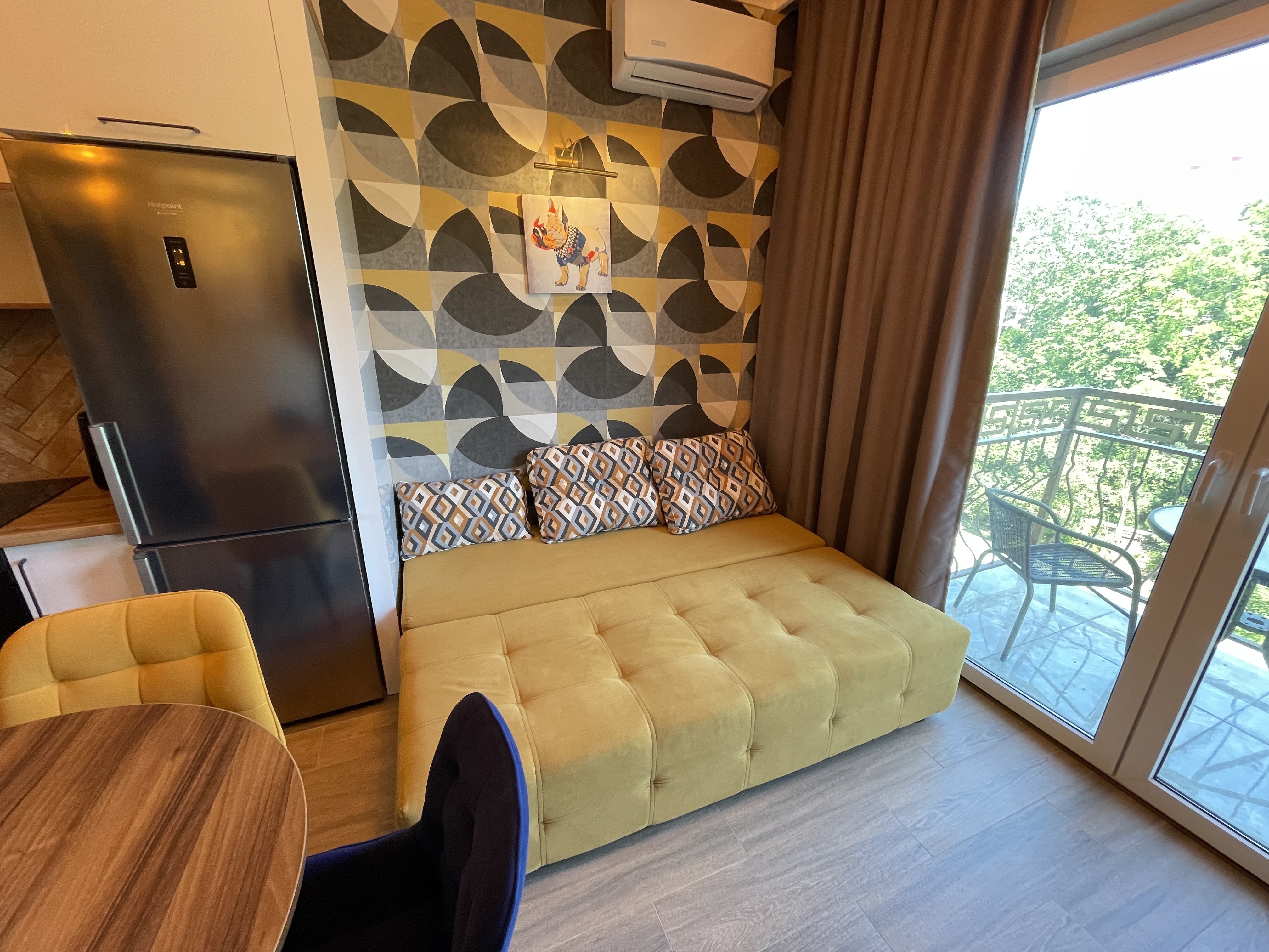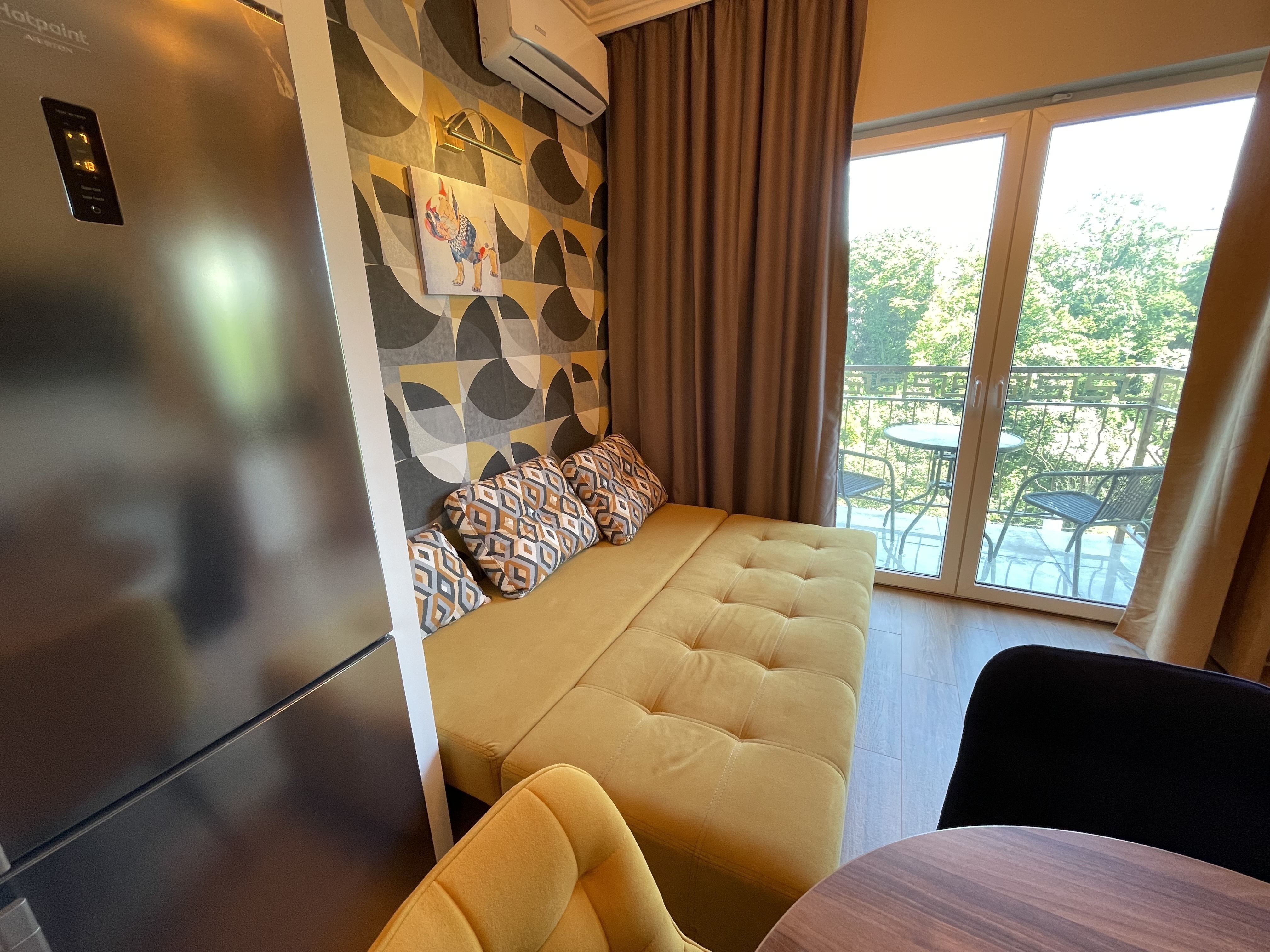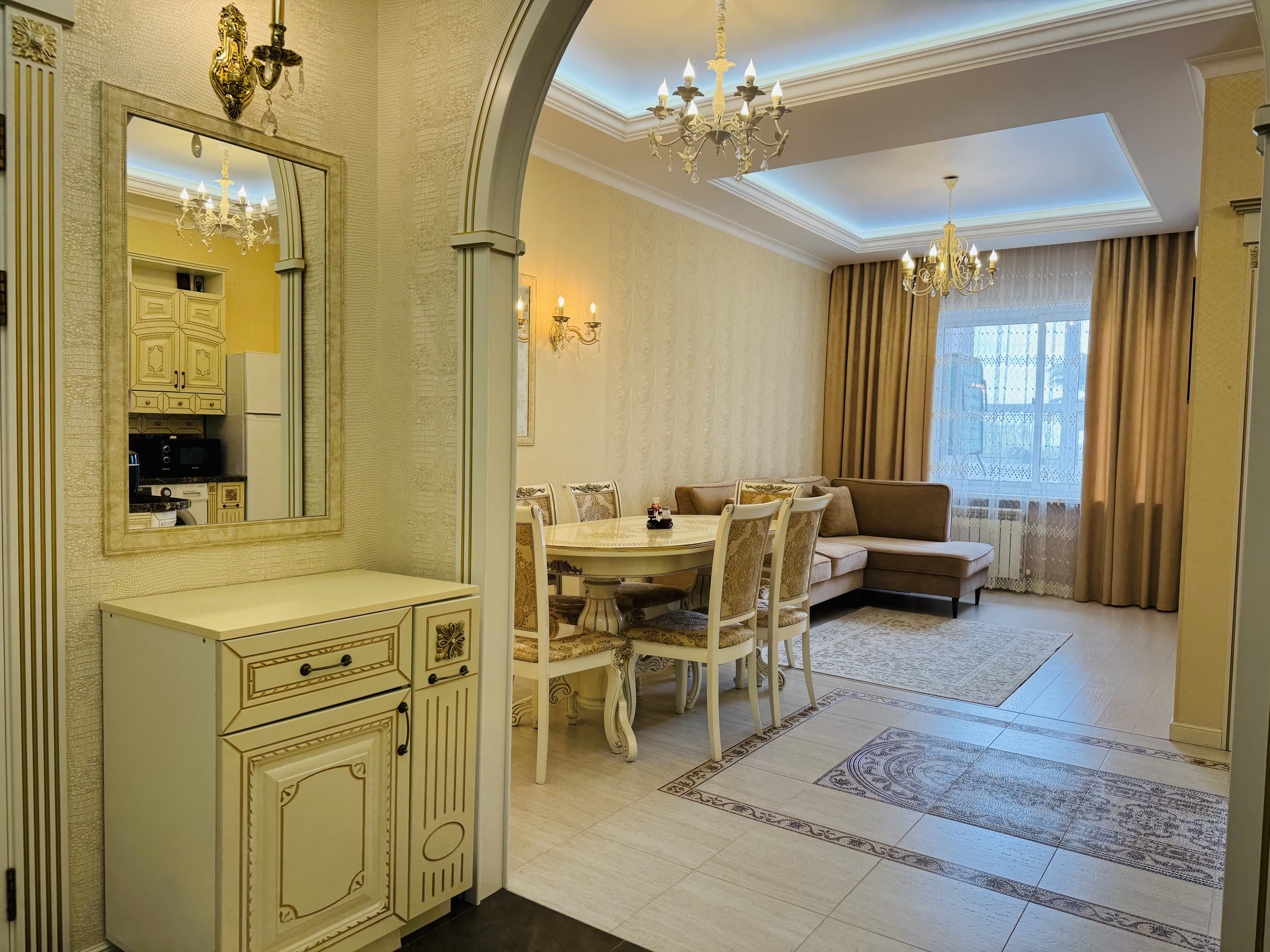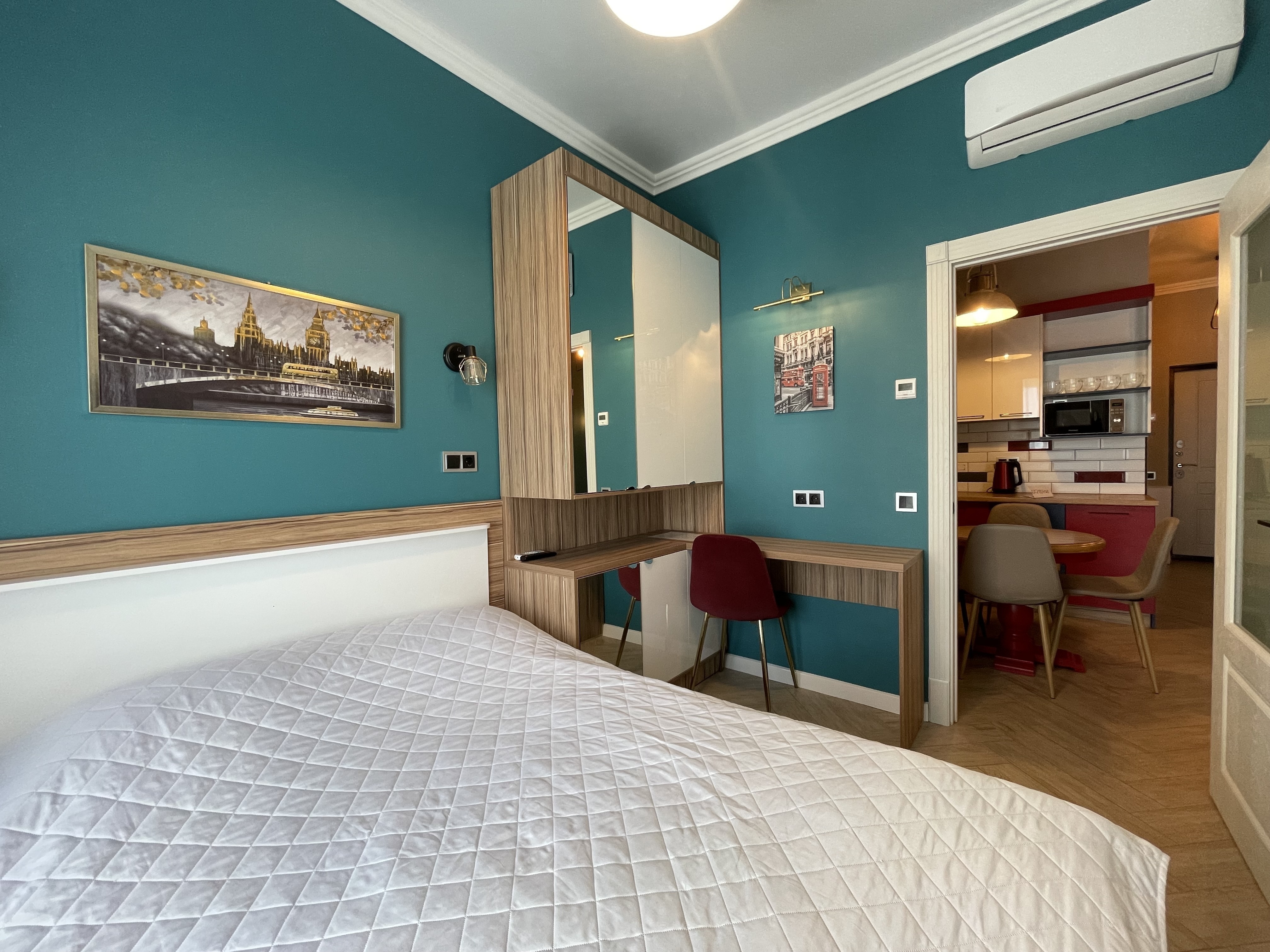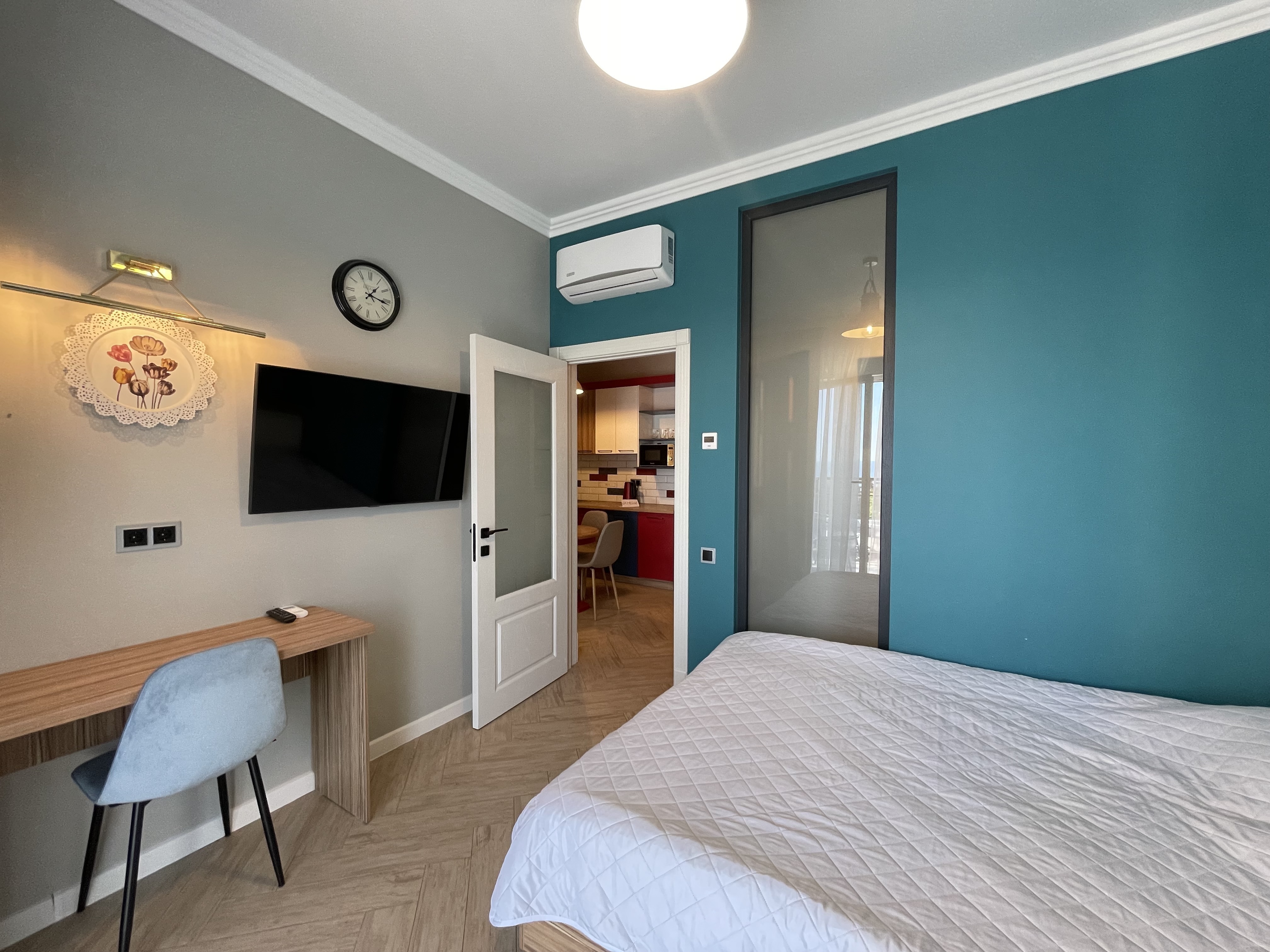 В квартире есть всё необходимое для проживания: холодильник, микроволновка, духовка, посудомоечная машина, кондиционер, стиральная машина, Wi-Fi и телевидение.