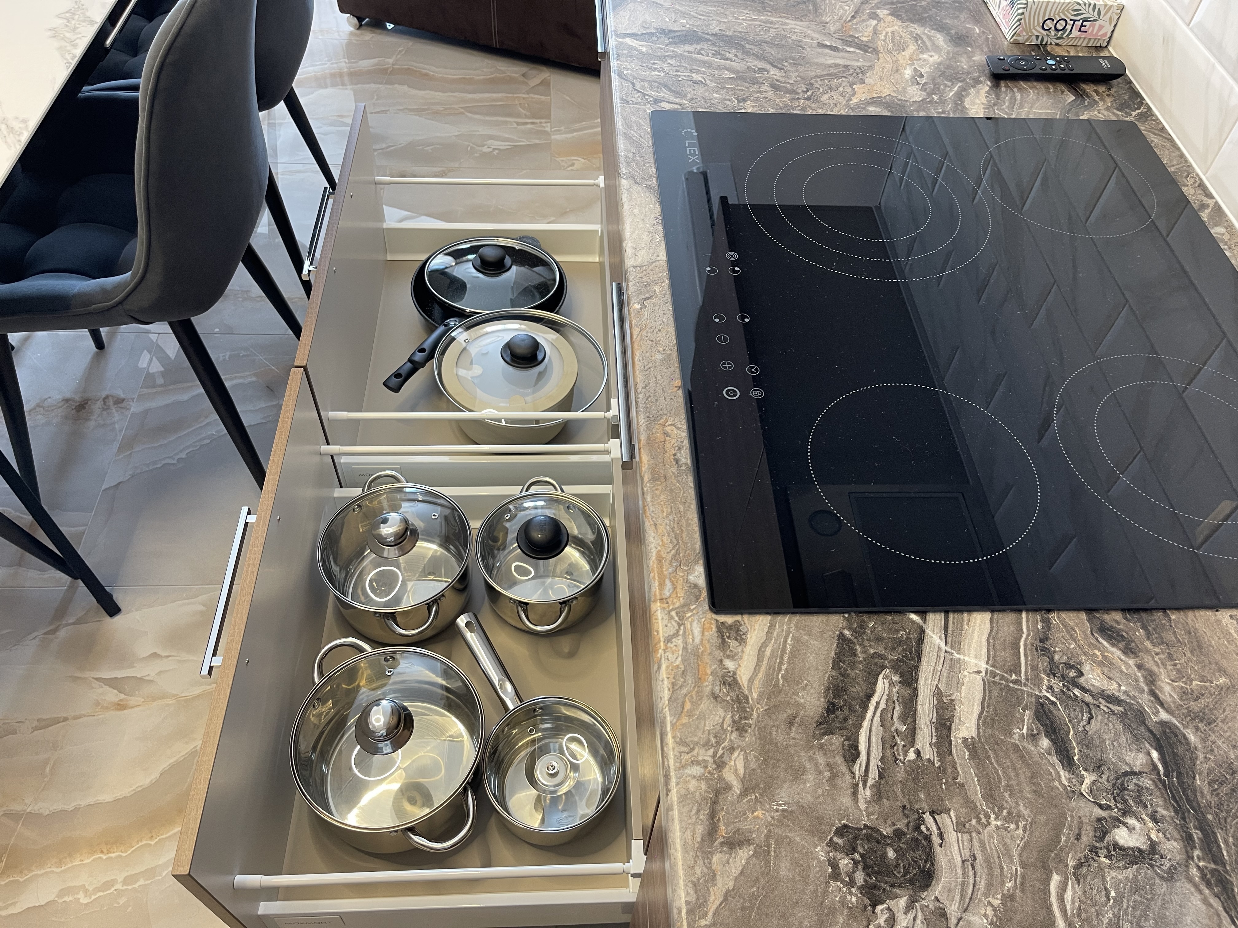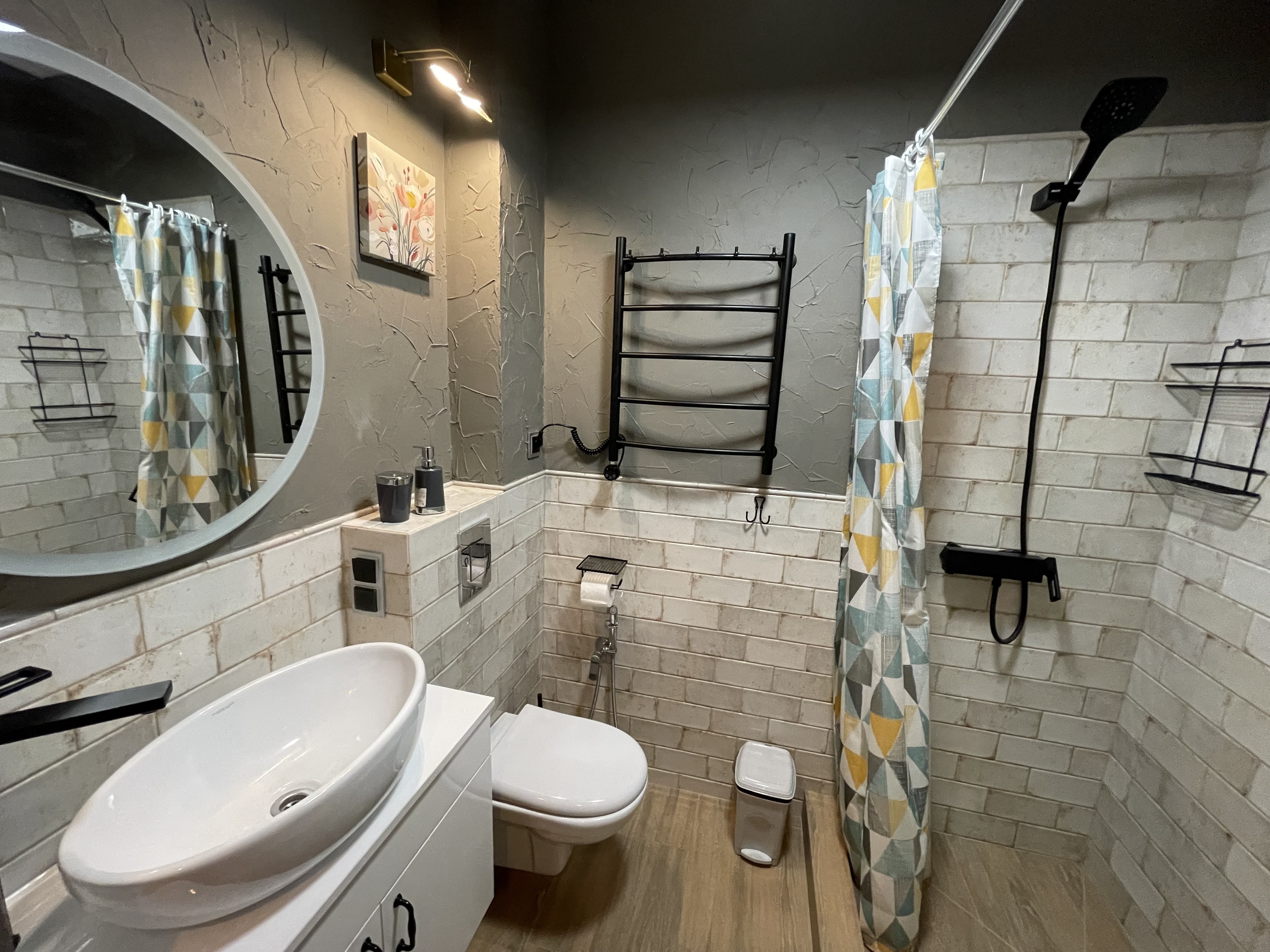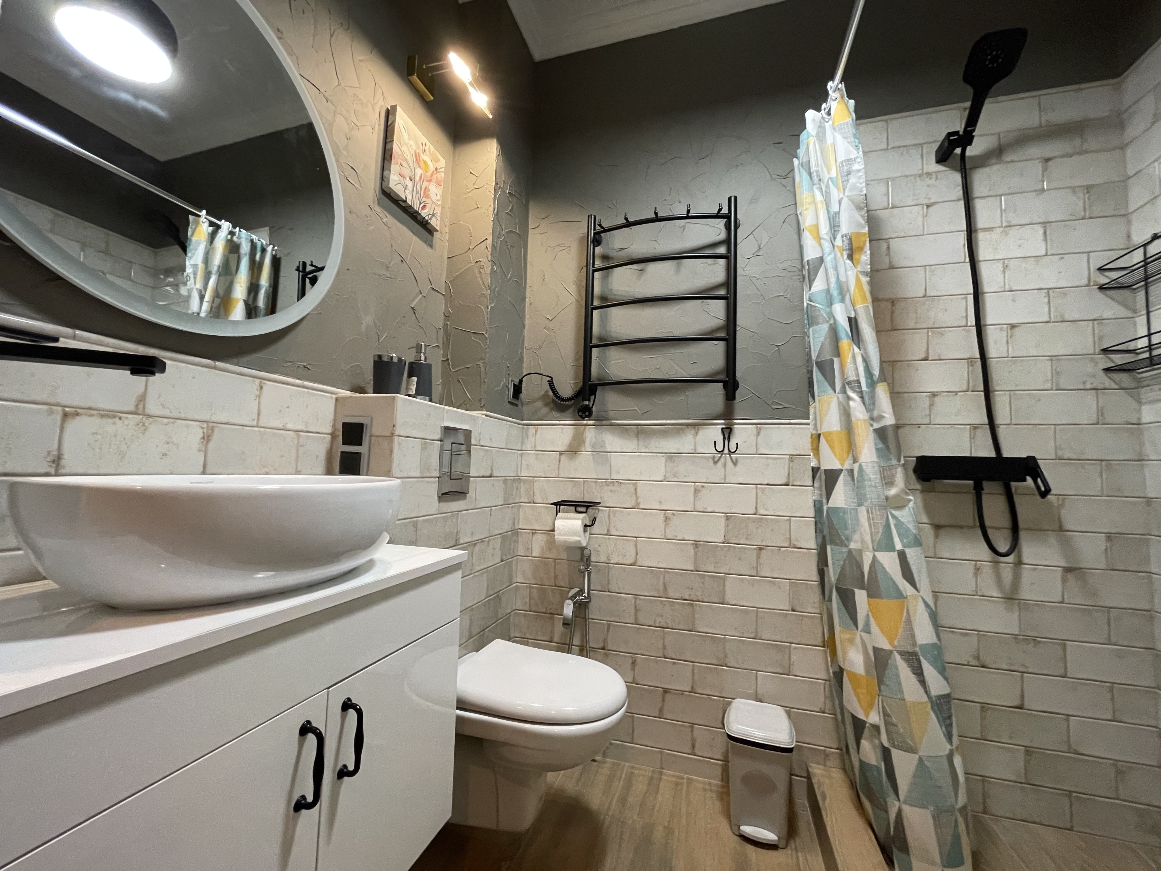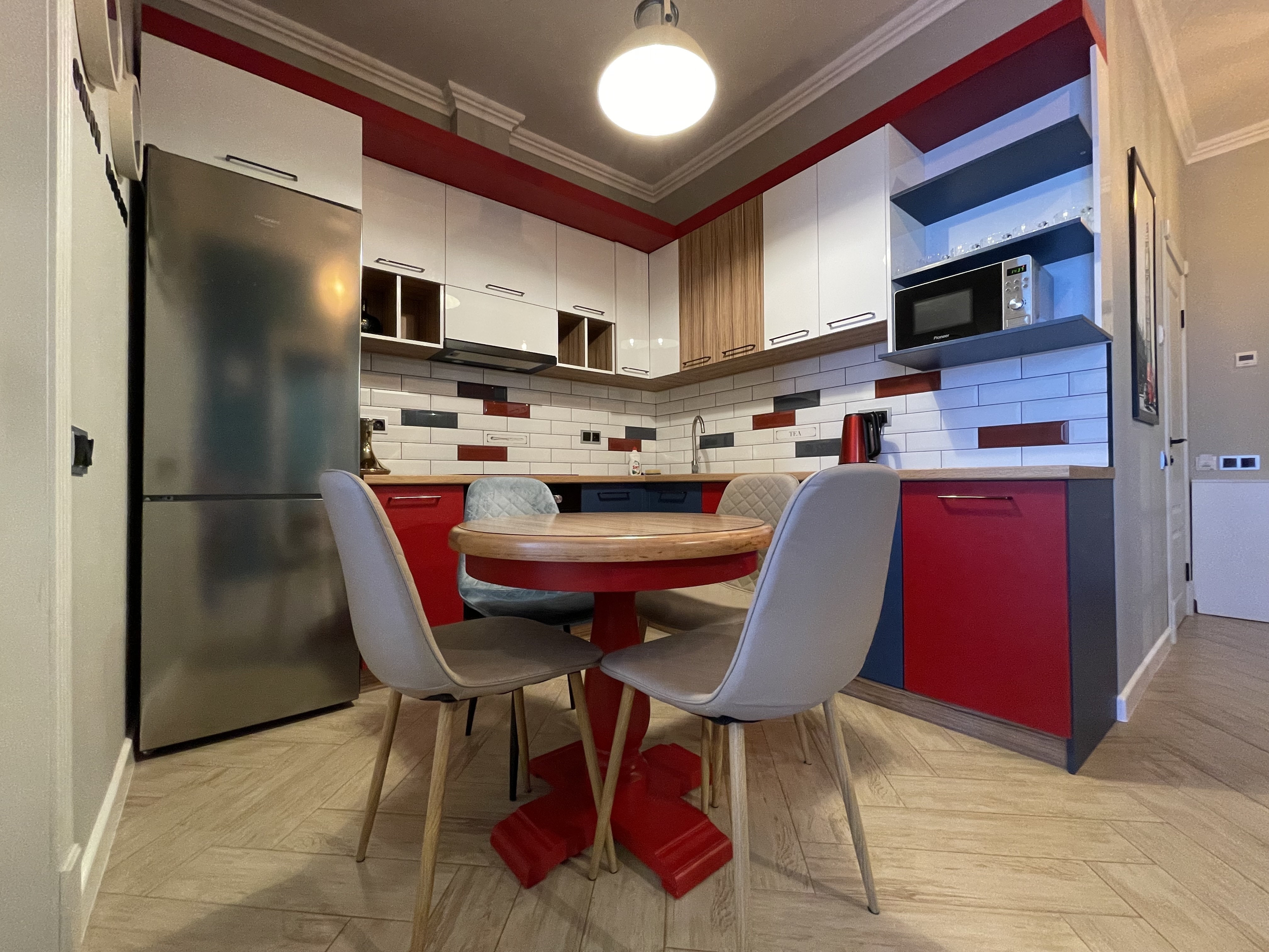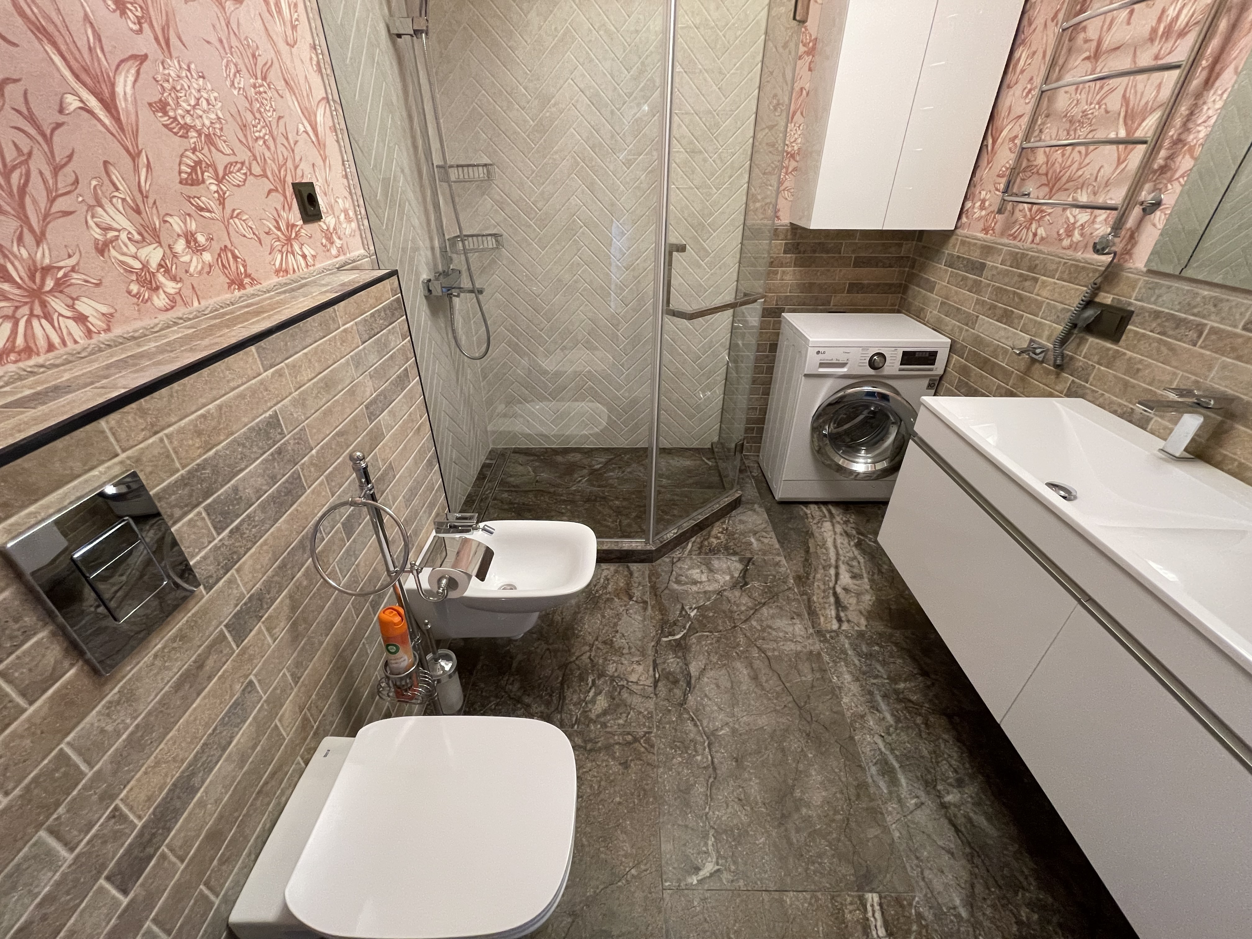 В квартире есть всё необходимое для проживания: холодильник, микроволновка, духовка, посудомоечная машина, кондиционер, стиральная машина, Wi-Fi и телевидение.