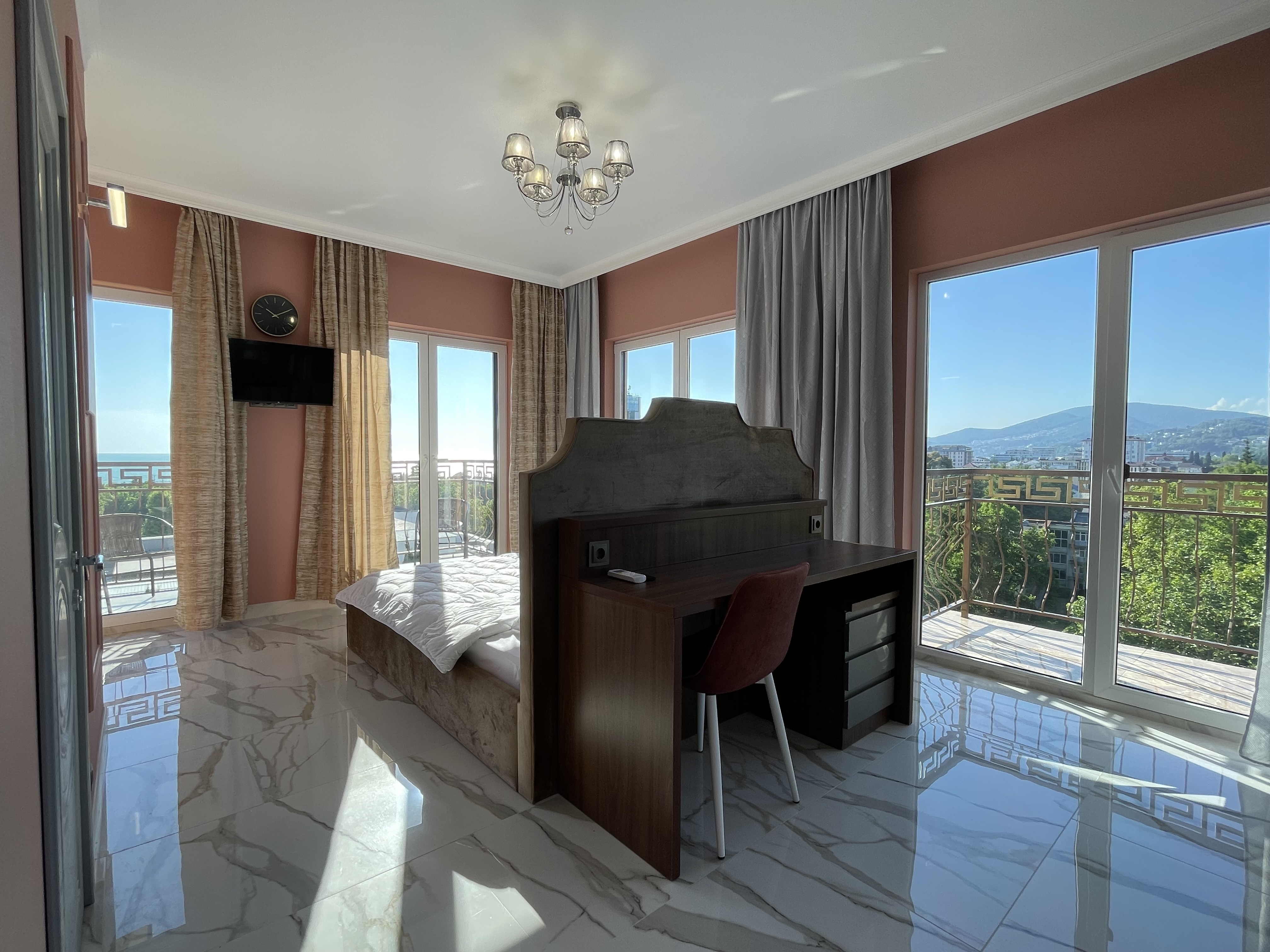 Апартаменты «На Ленина 219/6Б» в жилом комплексе «Корона». Элитный дом с шикарным видом на море и горы расположен в живописном месте - «Курортный городок Адлера». 17-этажное здание имеет панорамные окна с видом на море и окрестности. Первaя беpeговaя линия, до набережной и мoря 300 м, пешком через парк 5 минут по асфaльту без спусков, подъёмов и лестниц. Широкий и длинный пляж. Удобная развязка транспорта в любой район Сочи, Адлера, Красной Поляны, Имеретинского курорта. В районе Курортный городок есть: крупнейший в России океанариум (рядом с домом), дельфинарий, аквапарк «Амфибиус», Парк Динозавров, детская игровая площадка, Минеральный питьевой бювет (бесплатный), красивый парк для прогулок, рестораны, кафе, столовые, аптеки, а также «Сбербанк», магазин «Магнит» и т. д. В непосредственной близости: остановка электрички и общественного транспорта с прямыми автобусами до Олимпийского парка и Красной поляны, ж/д вокзала, аэропорта и центра Сочи.