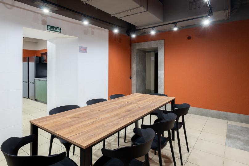 Большая полностью оборудованная кухня, где можно приготовить вкусную еду в компании друзей или просто посидеть за приятными беседами. Большая лаунж зона, где можно собраться для просмотра фильмов, большая отдельная столовая, где можно не только обедать или ужинать, но и собраться большой компанией за настольными играми. Ежедневно в хостеле подают завтраки по меню (по предварительному заказу). Для Вашего удобства – в хостеле можно приобрести гигиенические средства, сувениры и безалкогольные напитки.