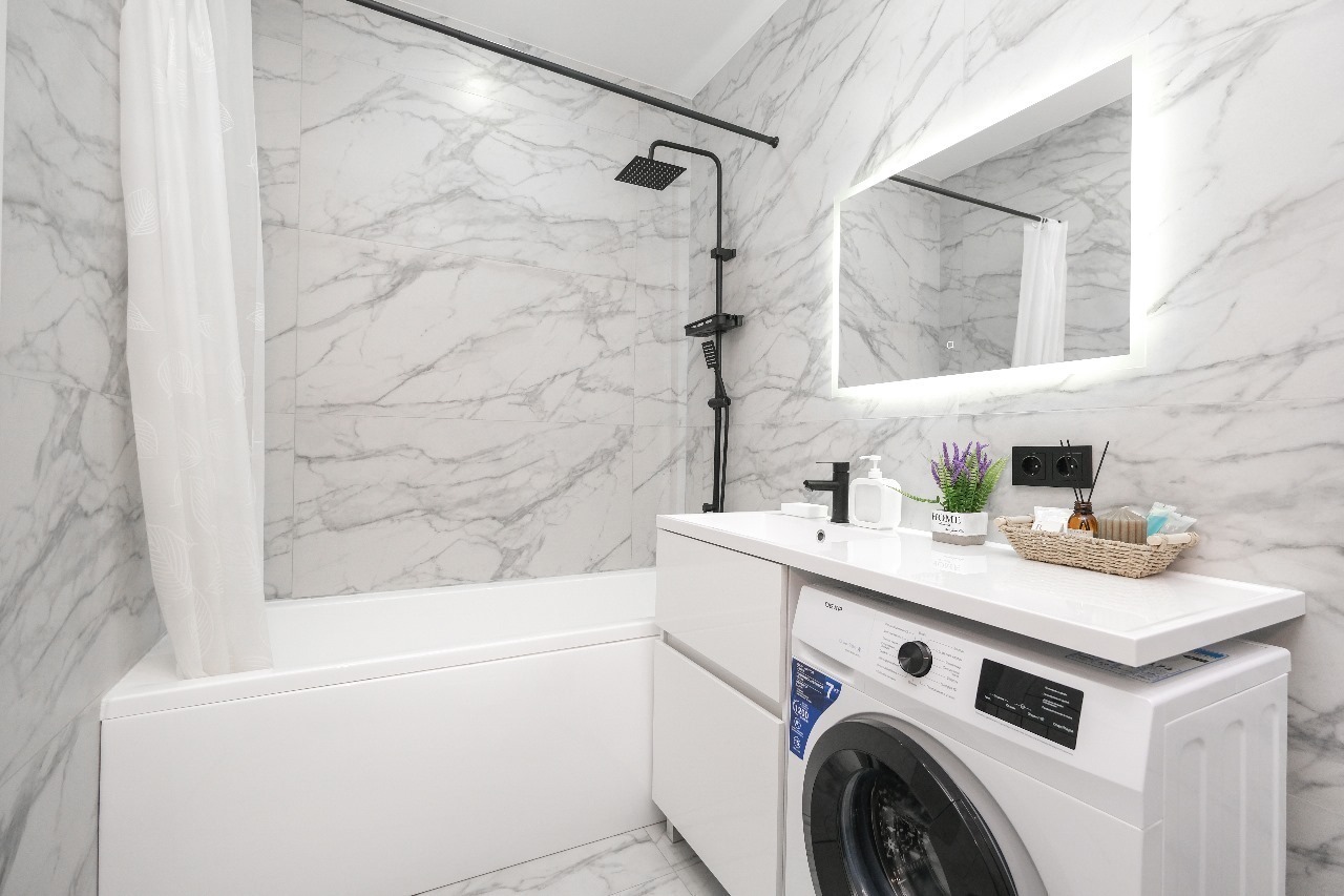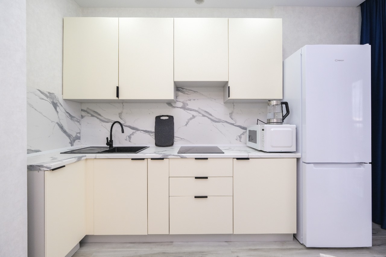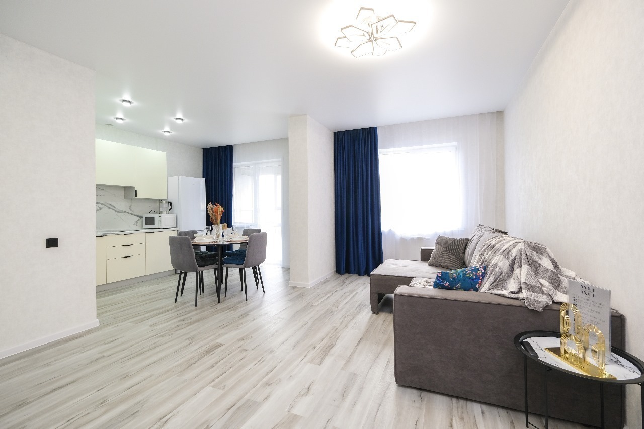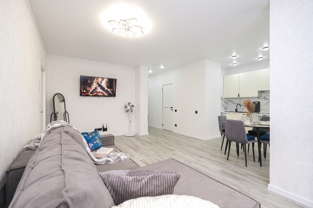 Для Вашего удобства предоставлены: стиральная машинка, двуспальная кровать с ортопедическим матрасом 160/200, двуспальный диван, кухонная зона, два плазменных телевизора 140 см Smart TV, холодильник, плита, микроволновка, чайник, посуда, утюг, гладильная доска, сушилка для белья, фен, безлимитный Wi-Fi, вентиляторэ