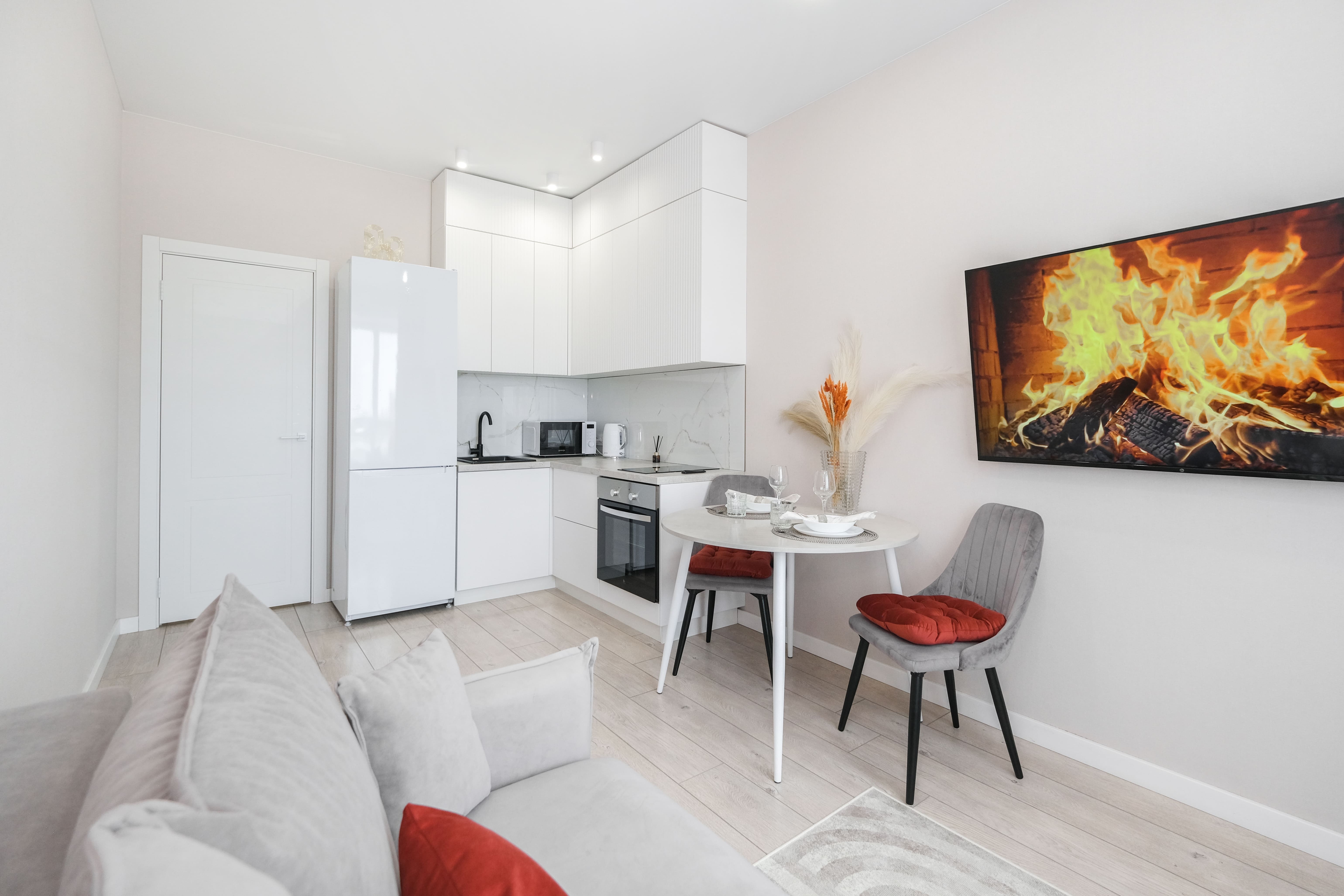 Для Вашего удобства предоставлены: стиральная машинка, одна двуспальная кровать с ортопедическим матрасом 160/200, двуспальный диван 140/190, кухонная зона, два плазменных телевизора 120 см Smart TV, холодильник, плита, духовой шкаф, микроволновка, чайник, посуда, утюг, гладильная доска, сушилка для белья, фен, безлимитный Wi-Fi.