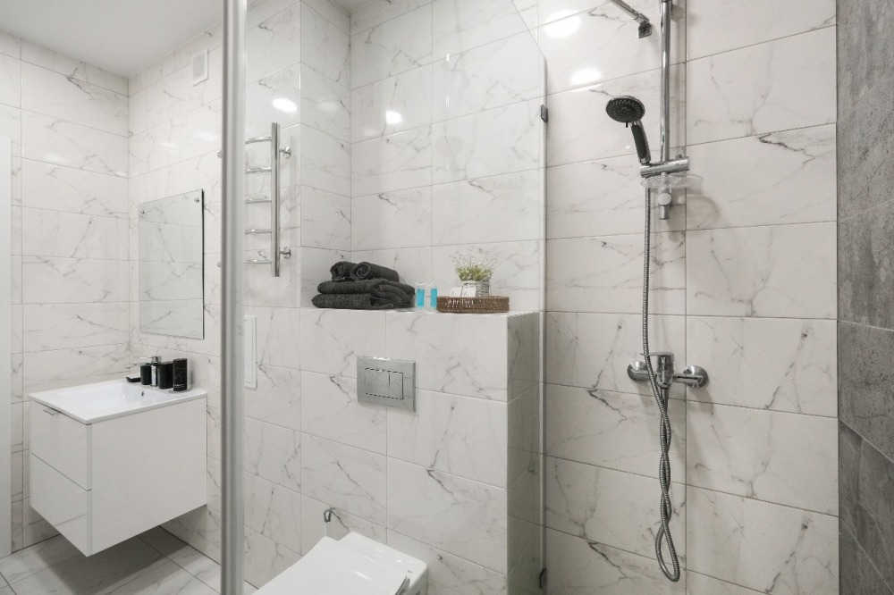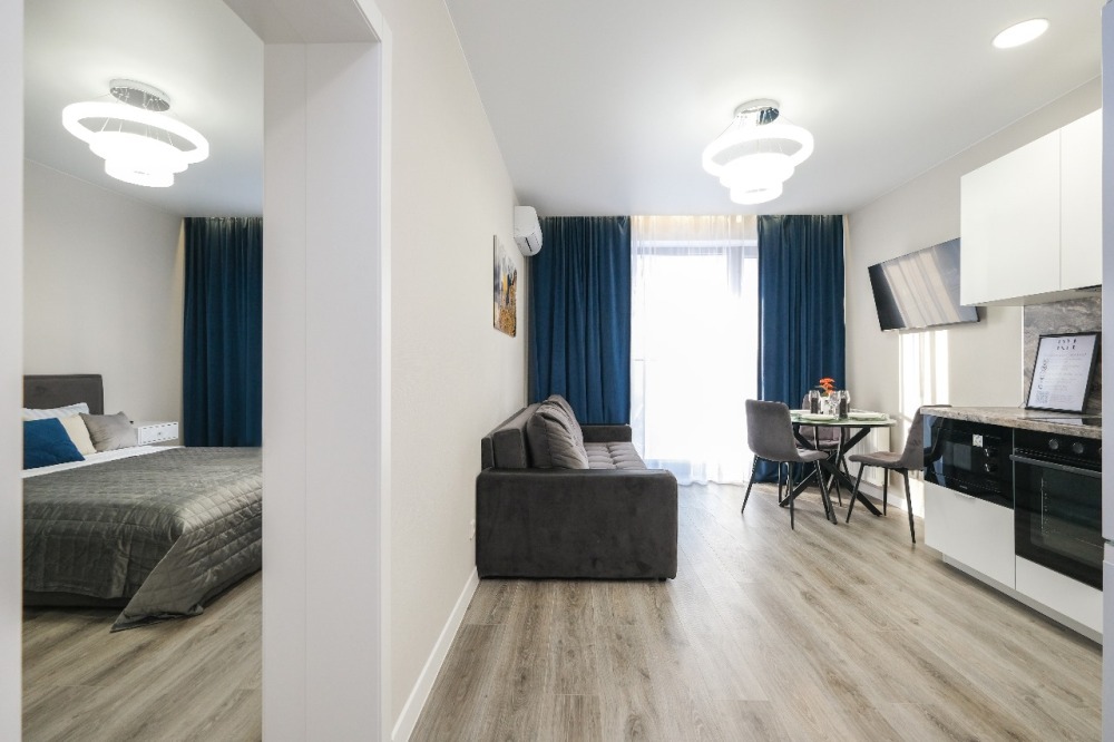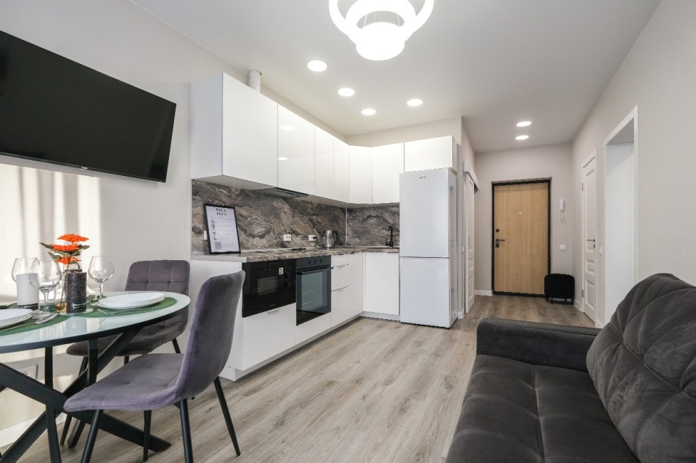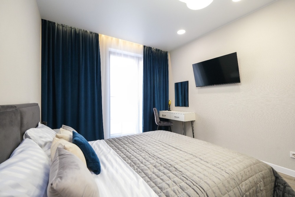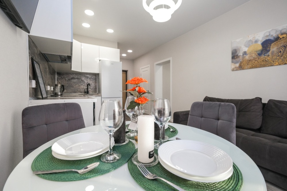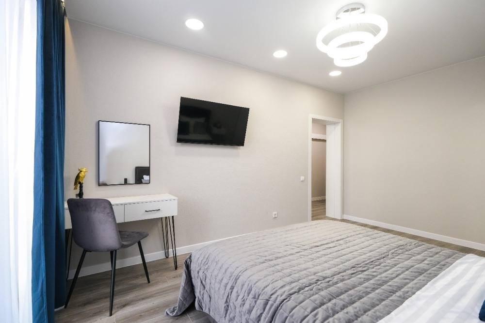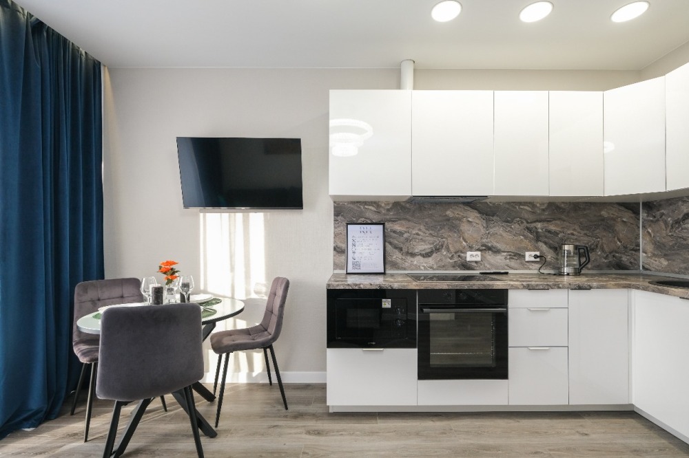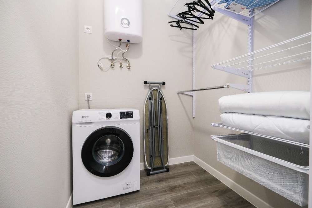Для Вашего удобства предоставлены: бытовая техника «Gorenje», окна в пол. В квартире есть все необходимое для комфортного проживания: стиральная машинка, двуспальная кровать с ортопедическим матрасом 160/200, двуспальный диван 160/200, кухонная зона, два телевизора 120 см Smart TV, холодильник, плита, духовой шкаф, микроволновка, чайник, посуда, утюг, гладильная доска, сушилка для белья, фен, кондиционер, безлимитный Wi-Fi, водонагреватель.