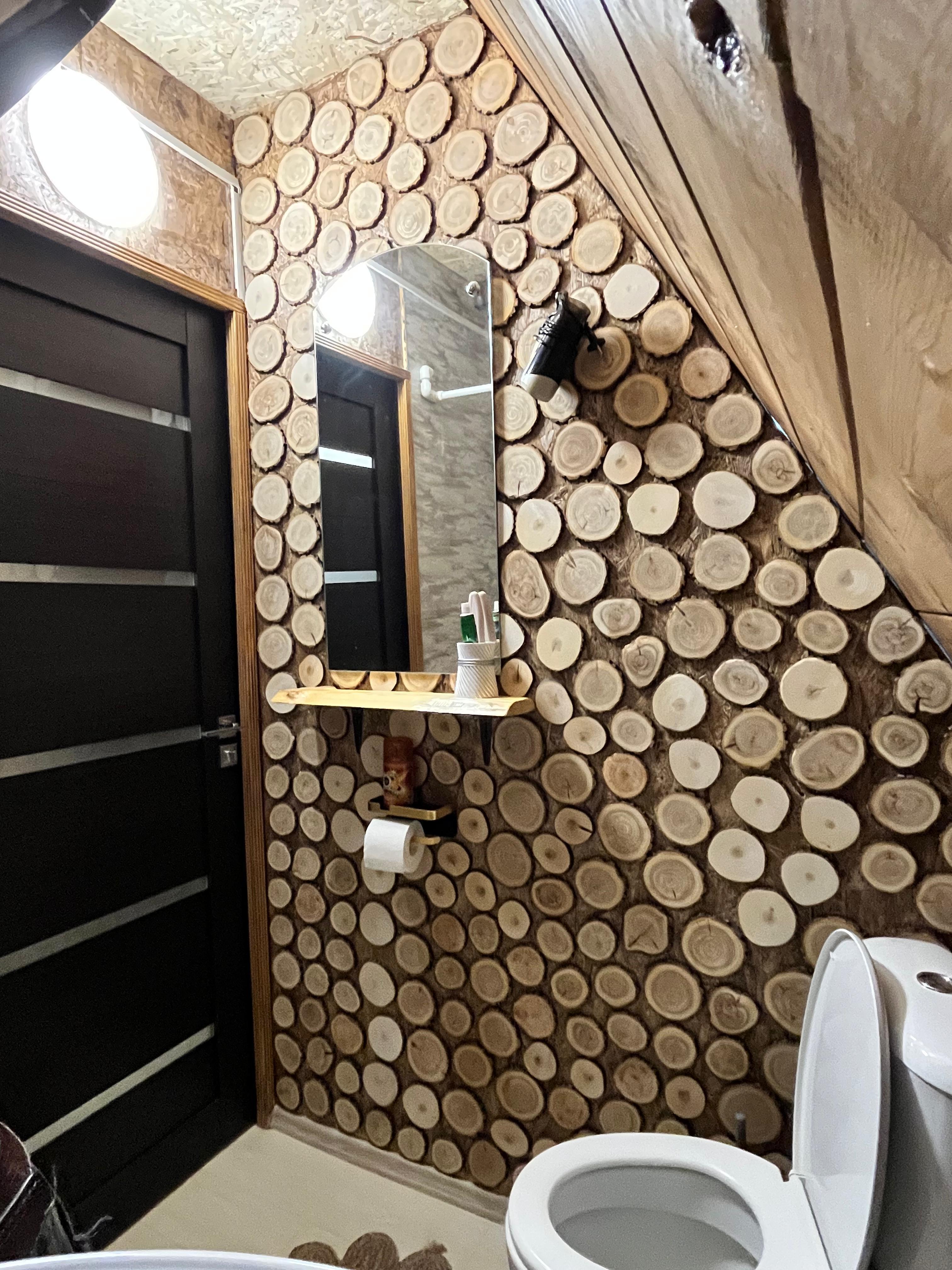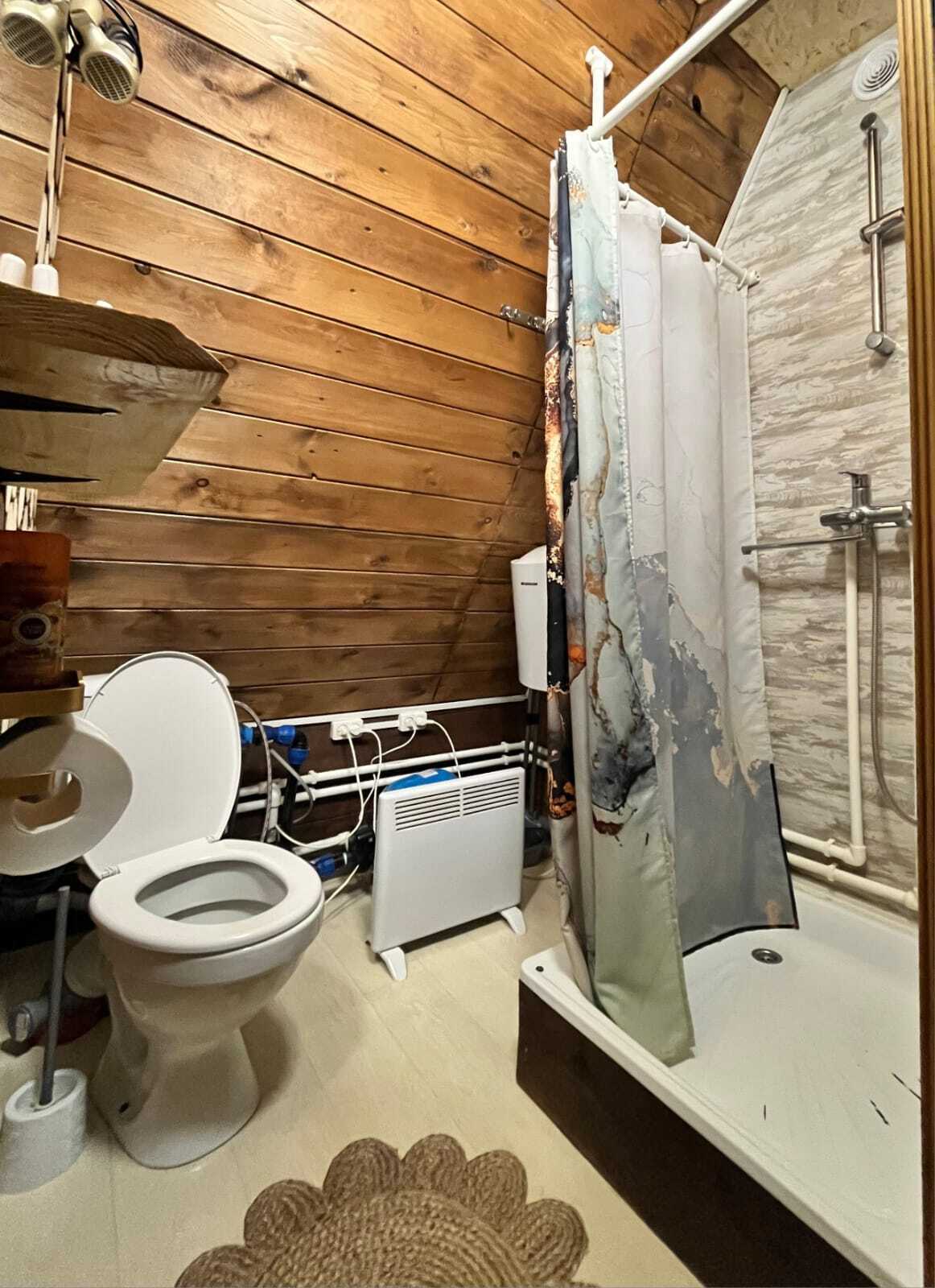 На первом полностью укомплектованная кухня (холодильник, плита, микроволновая печь, чайник, посуда). В душевой чистые полотенца, фен, мыльные принадлежности. В гостиной большой обеденный стол на 6 персон, диван с двумя спальными местами, телевизор, Wi-Fi. Дом теплый с возможностью регулировки температуры.
