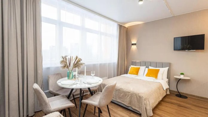 Интернет: высокоскоростной Wi-Fi от GoodLine. Есть телевизор с кабельным ТВ и функцией «Смарт-ТВ».