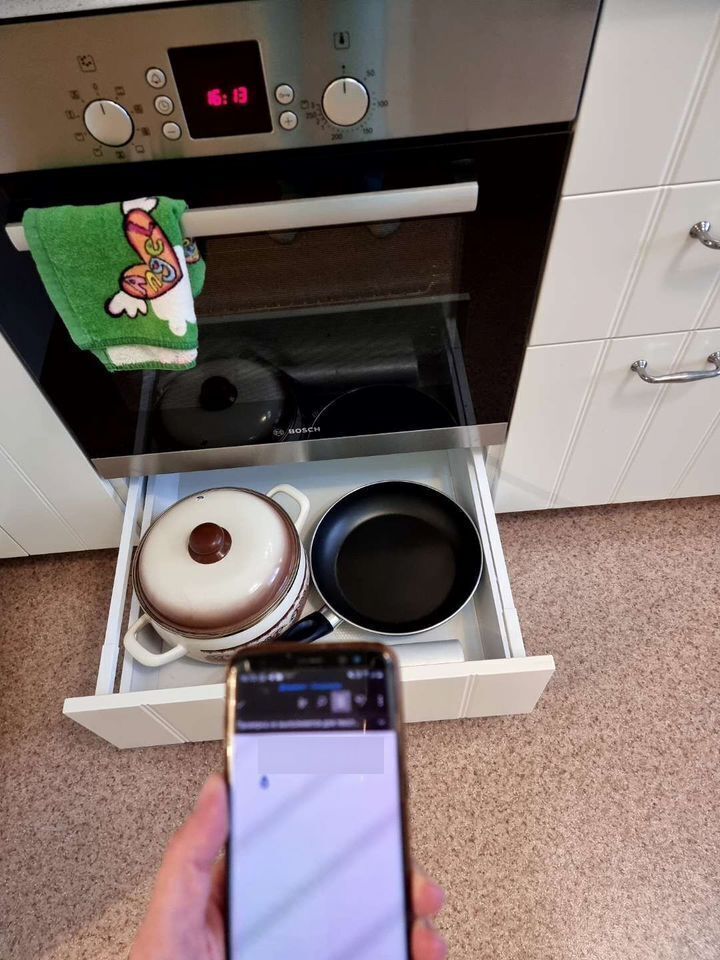 - на кухне: посуда для готовки, газовая плита, эл. духовой шкаф, мультиварка.