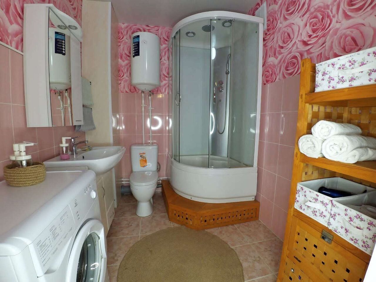 - в ванной: мыло, шампунь, гель для душа, полотенца, есть бойлер. Горячая вода будет всегда.