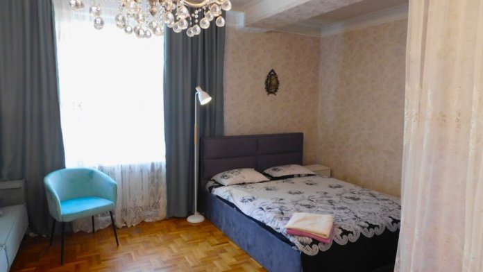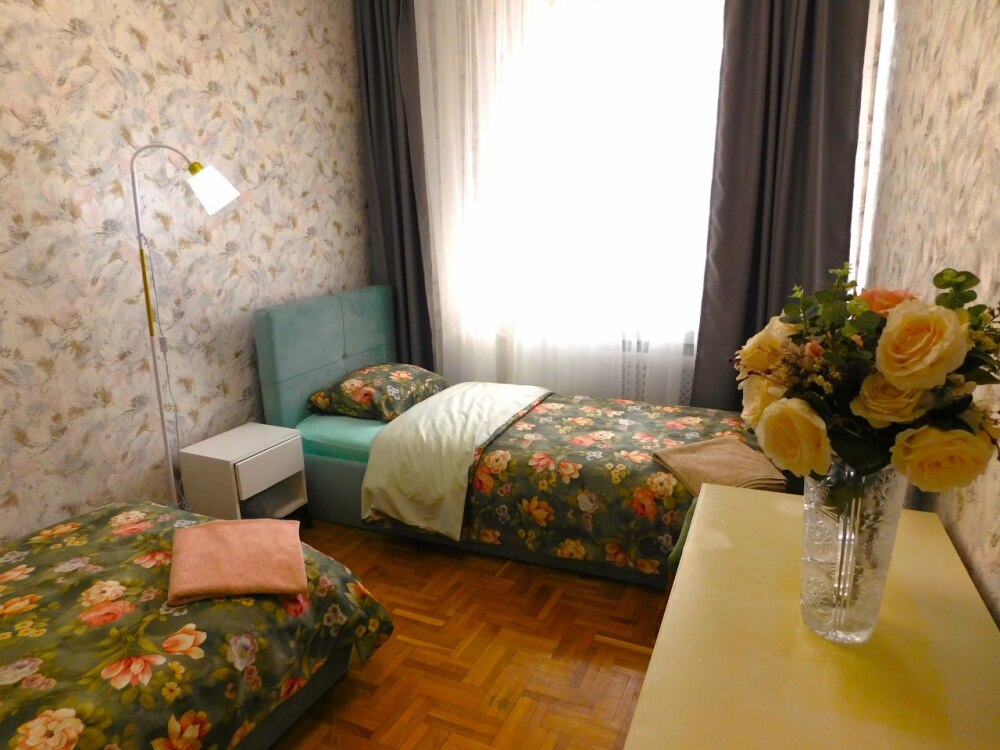 Квартира 70 кв. метра. 1 этаж. 2 изолированные комнаты, 2 лоджии одна из них со спальным местом, 2 коридора, раздельный санузел, просторная кухня со всем необходимым, 3 двухспальные кровати и 4 дивана.