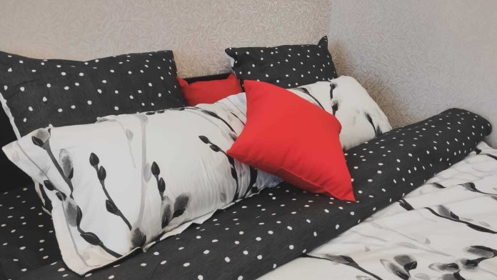 В комнате мягкая и очень удобная двуспальная кровать и диван.