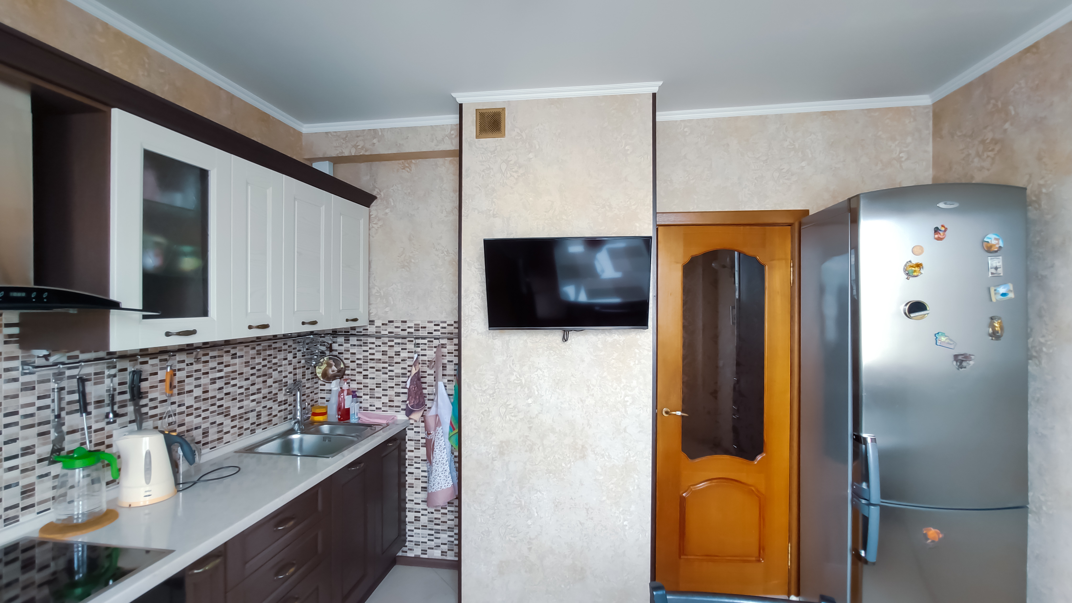Кухня оснащена электроплитой, духовкой, вместительным холодильником, СВЧ-печью, чайником, посудой и всеми кухонными приборами.