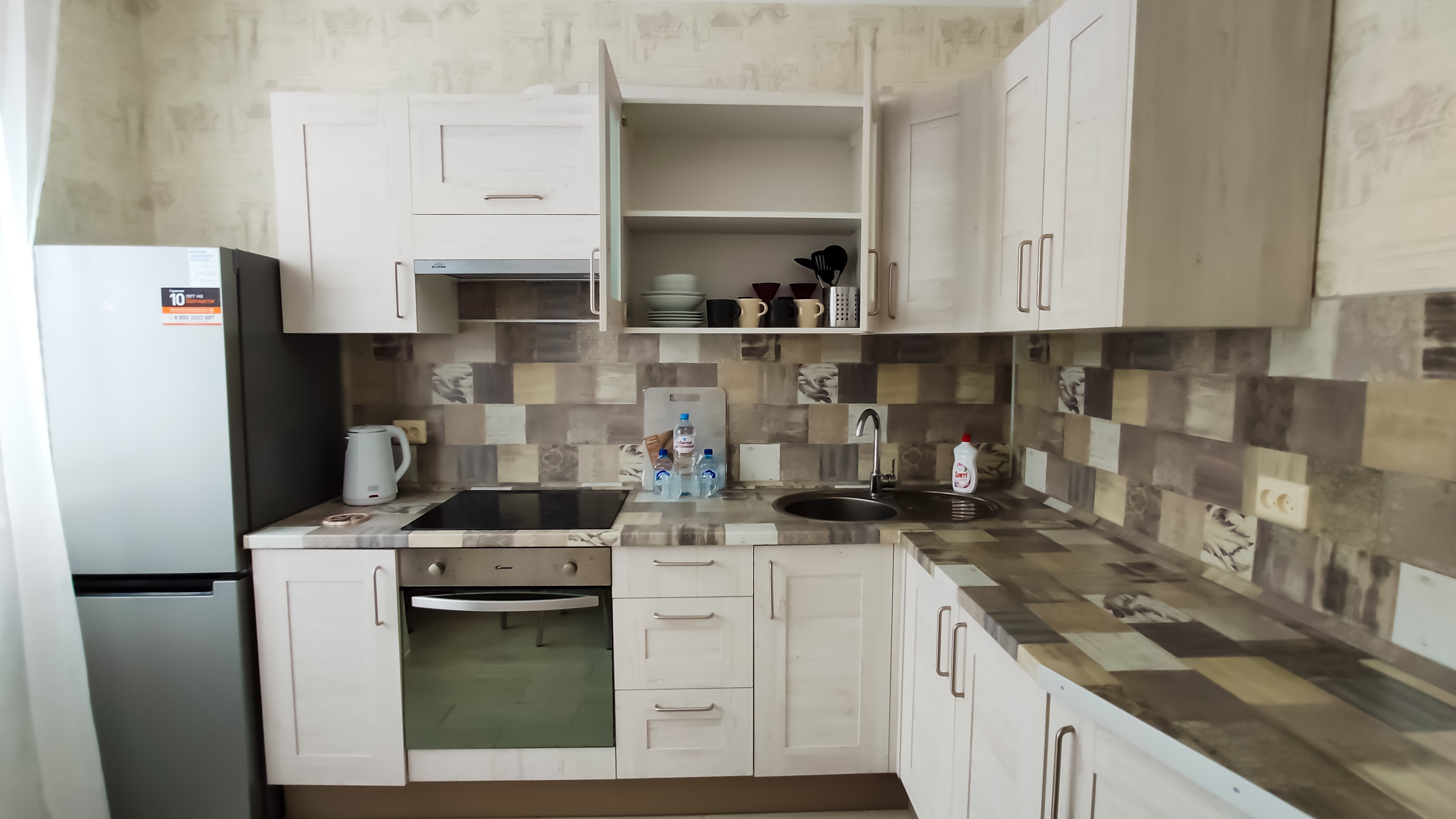 Кухня оснащена электроплитой, духовкой, вместительным холодильником, СВЧ-печью, чайником, посудой и всеми кухонными приборами.