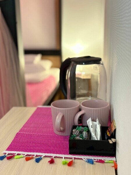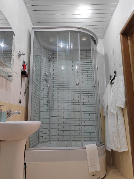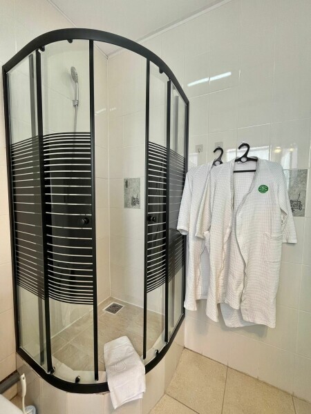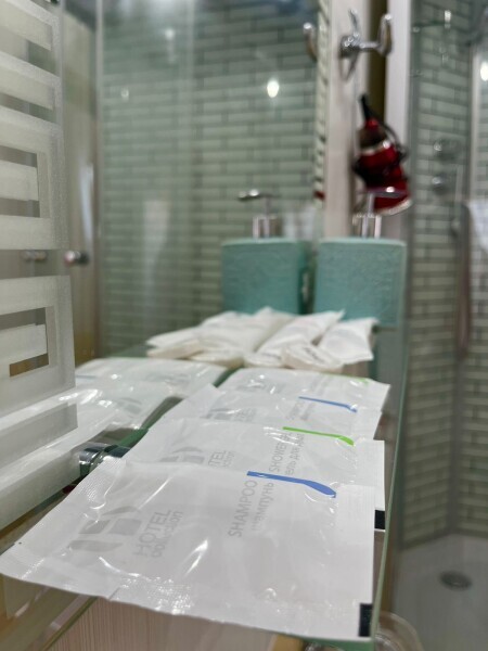 В номере предоставляются индивидуальные гигиенические принадлежности: гели для душа, шампуни, мыло, зубные наборы, полотенца и, одноразовые тапочки и вафельный халат.