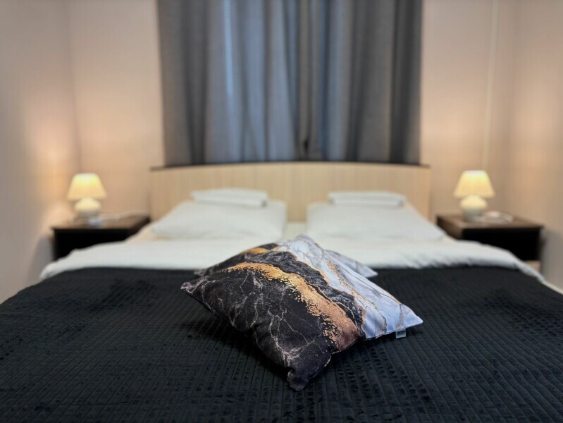 Стильные стандартные номера на любой вкус. Погрузитесь в мир уюта. Каждый стандартный номер оборудован двуспальной кроватью.