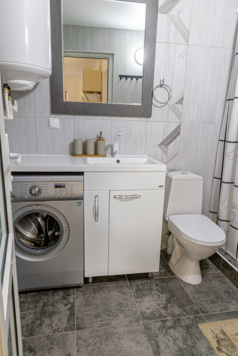 В ванной есть сушилка для белья, стиральная машинка, душевая кабина, полотенца
